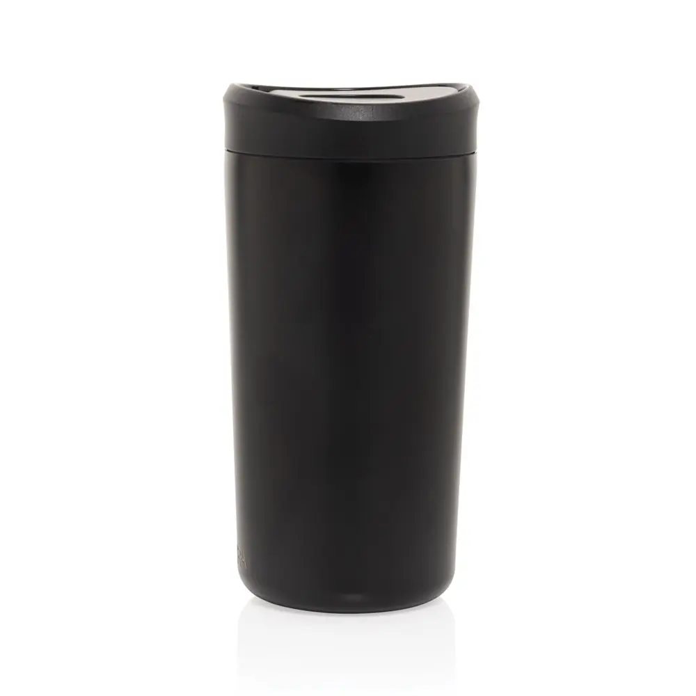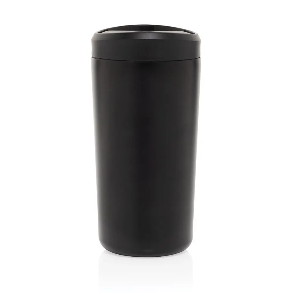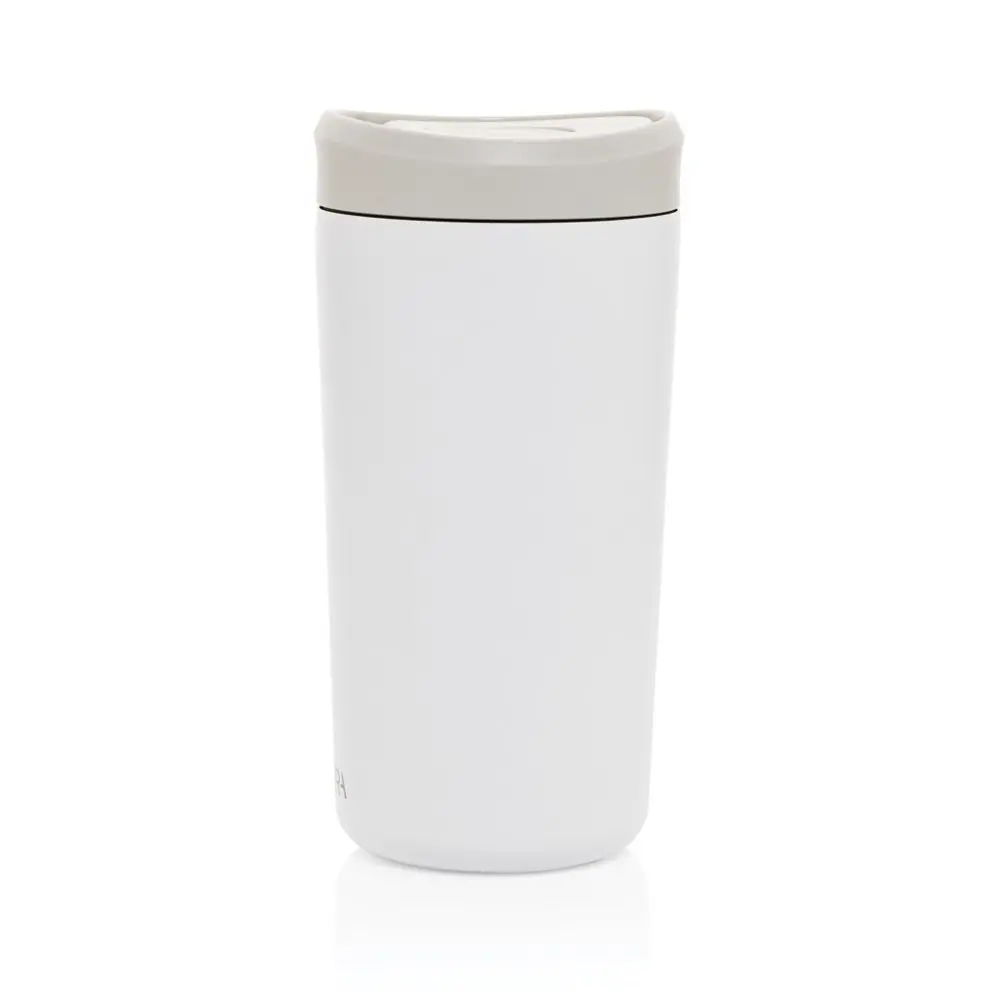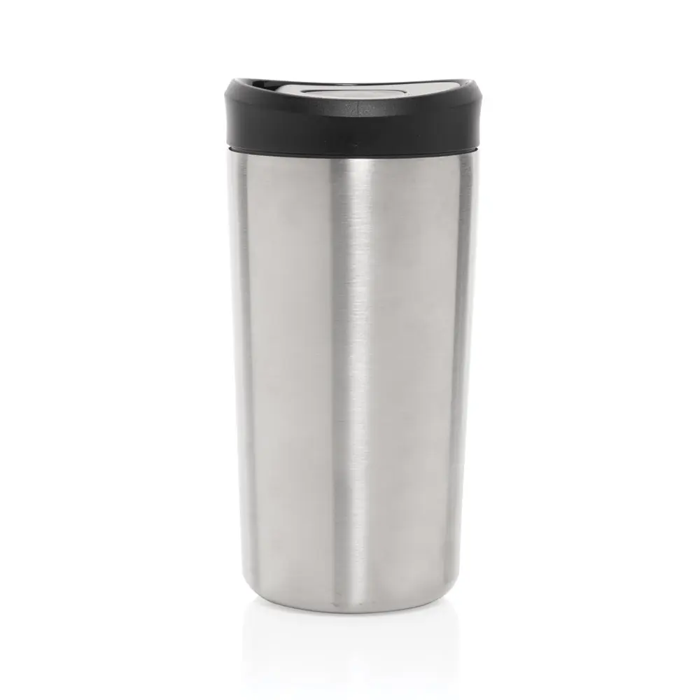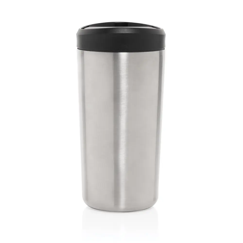 Découvrez la mug Alix 400 ml en acier inoxydable recyclé RCS, l'alliée idéale pour les professionnels en mouvement. Son ouverture d'un seul clic facilite les gorgées rapides pendant les trajets ou les meetings animés, tandis que son couvercle élégant et facile à nettoyer assure hygiène et praticité. Parfaite pour boissons chaudes ou froides (jusqu'à 5h chaudes, 15h froides), elle allie style durable et fonctionnalité sans BPA, conforme aux normes alimentaires UE.