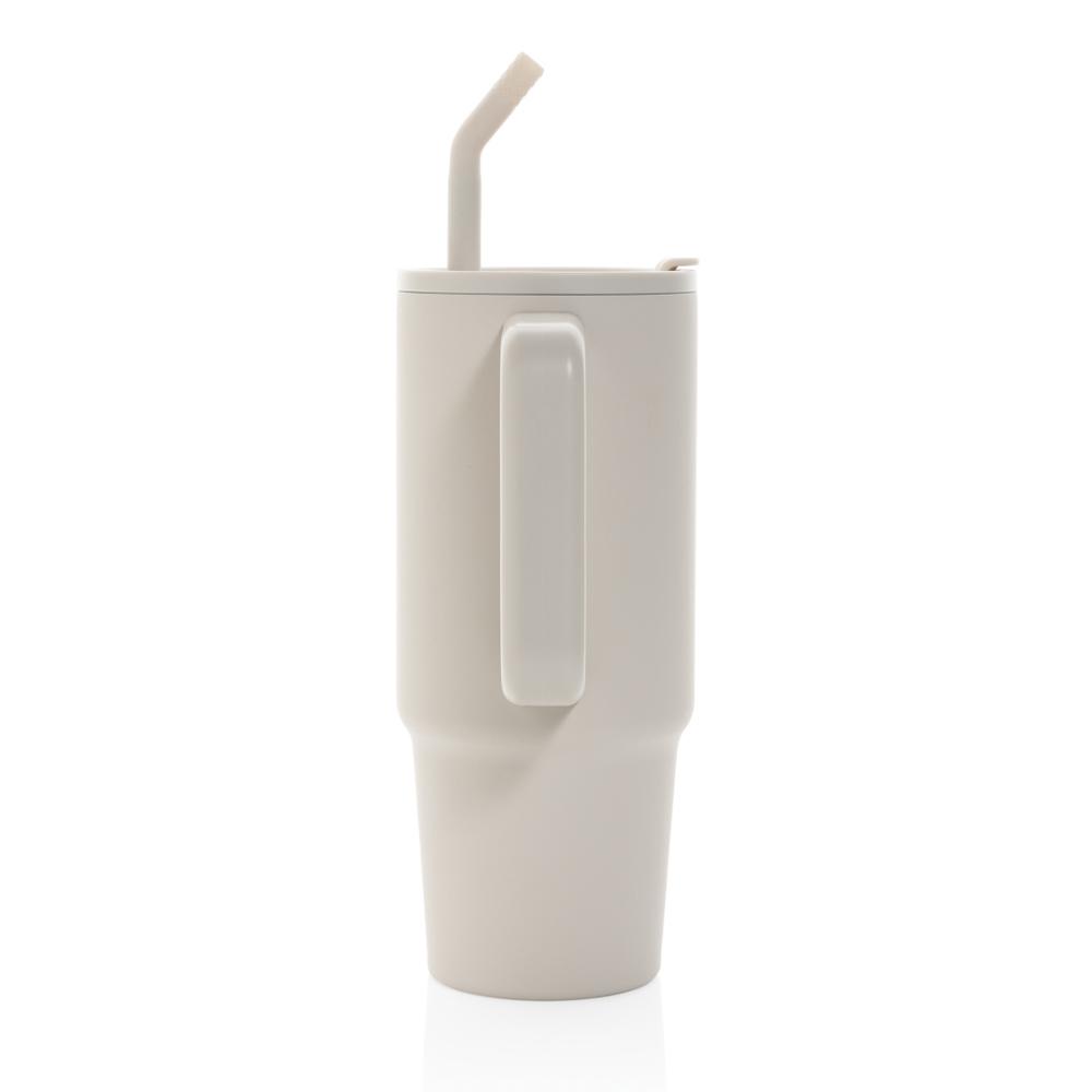 Équipée d'un couvercle à vis multifonctionnel avec bec verseur et paille en silicone rétractable, elle s'adapte à tous les usages : café chaud le matin ou eau fraîche en déplacement. Sa poignée ergonomique et sa base fine (diamètre 97 mm) s'insèrent facilement dans la plupart des porte-gobelets, assurant une hydratation optimale lors de réunions, salons ou activités outdoor.