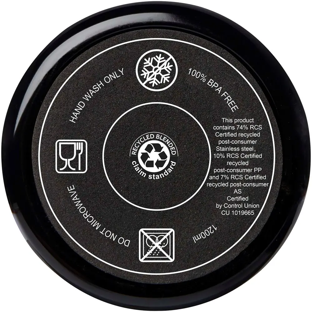 Découvrez le mug isotherme Melbourne 1200 ml, certifié RCS, idéal pour vos campagnes marketing et événements d'entreprise. Sa double paroi isolante maintient les boissons chaudes jusqu'à 2 heures et froides jusqu'à 4 heures, parfait pour garder vos clients hydratés et satisfaits toute la journée. Fabriqué en plastique recyclé à l'intérieur et acier inoxydable recyclé à l'extérieur, il incarne un engagement écologique qui renforce l'image durable de votre marque.