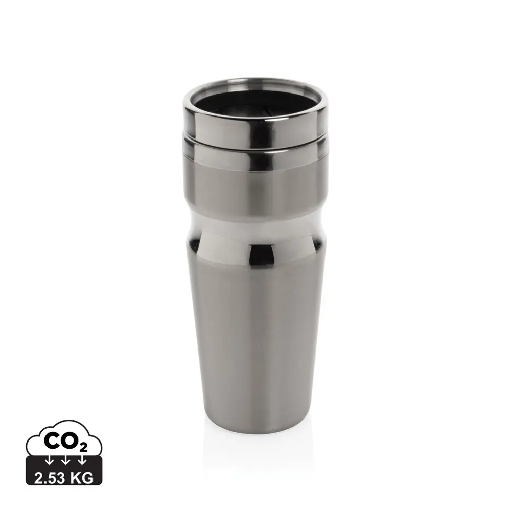Le mug Contour de 350 ml est conçu pour une prise en main confortable grâce à sa forme ergonomique et son couvercle adapté. Idéal pour les boissons chaudes conservées jusqu'à 5 heures ou froides jusqu'à 15 heures, ce modèle breveté offre une isolation thermique exceptionnelle. Fabriqué en acier inoxydable et PP sans BPA, il respecte les normes de sécurité alimentaire (conforme à la législation allemande et à la directive 1907/2006/CE). Parfait pour les entreprises et organisateurs d'événements, il se personnalise facilement avec votre logo pour des cadeaux promotionnels impactants. Diamètre : 77 mm. Livré en polybag et boîte individuelle.