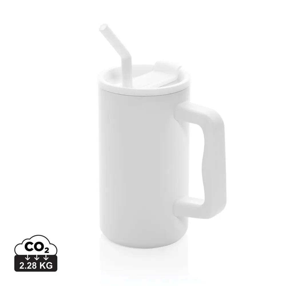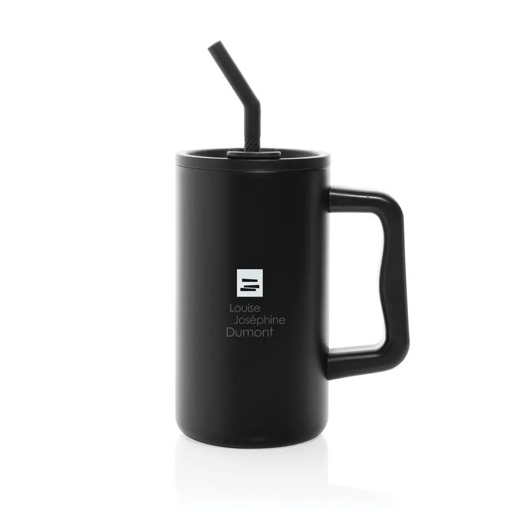 Fabriquée en acier inoxydable recyclé durable, cette mug de 800 ml offre une poignée robuste et une large base pour une prise en main confortable et stable. Dotée d'une double paroi isolée sous vide, elle maintient les boissons chaudes jusqu'à 5 heures et froides jusqu'à 15 heures. Le couvercle vissable sécurisé inclut un bec verseur pratique ou une paille avec embout en silicone souple, rendant ce mug polyvalent pour les boissons chaudes ou froides au quotidien.