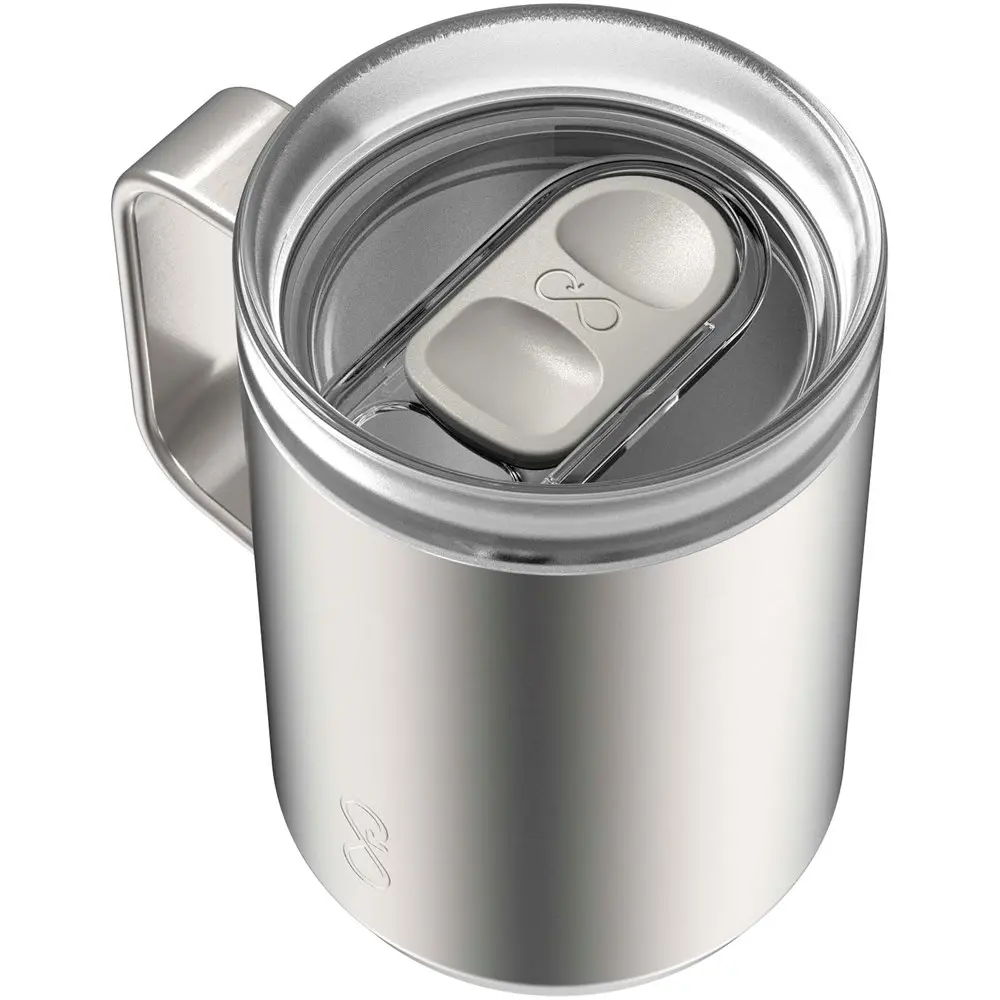 Découvrez le mug isotherme Ocean Bottle de 350 ml, parfait pour vos actions marketing et événements d'entreprise. Grâce à sa double paroi, il maintient les boissons chaudes jusqu'à 4 heures et froides jusqu'à 10 heures, offrant un confort optimal à vos clients. La poignée ergonomique se fixe facilement à un sac, facilitant le transport et l'espace de rangement lors de déplacements.
