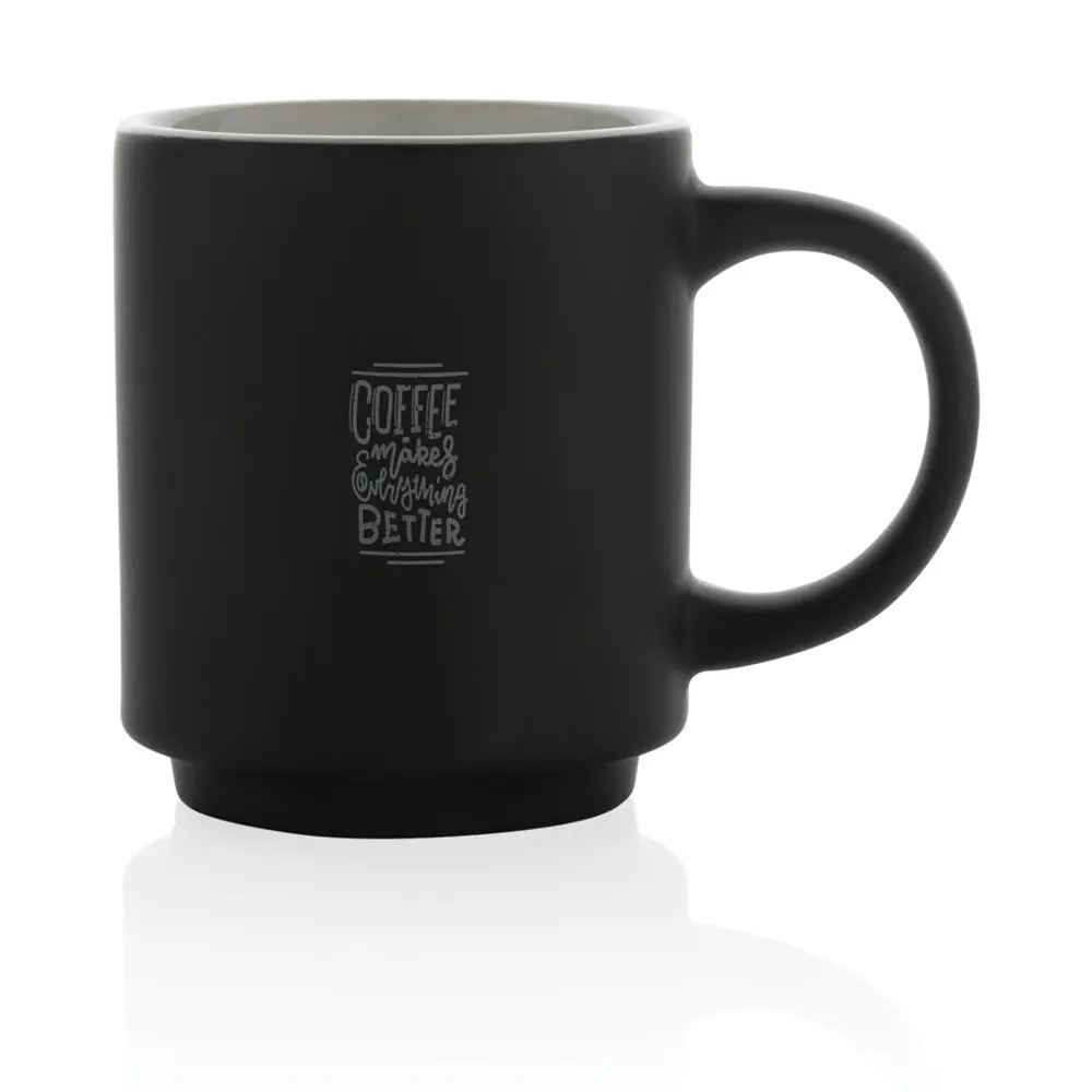 Découvrez notre mug empilable de 180 ml en céramique, idéale pour les entreprises en quête de cadeaux promotionnels personnalisables. Sa conception empilable facilite le stockage et l'organisation, parfait pour les commandes en volume lors d'événements ou de campagnes marketing. Résistante au lave-vaisselle et conforme aux normes EN12875-1 (au moins 125 cycles de lavage), elle garantit une durabilité optimale pour une utilisation quotidienne. Certifiée selon les directives 1935/2004/CE et 2020/1245 pour la sécurité alimentaire, elle assure la qualité et la confiance auprès de vos clients. Livrée dans une boîte cadeau en kraft écologique, elle se présente élégamment pour une impression professionnelle lors de la remise. Personnalisez-la avec votre logo pour booster votre visibilité et fidéliser votre audience. Diamètre : 68 mm.