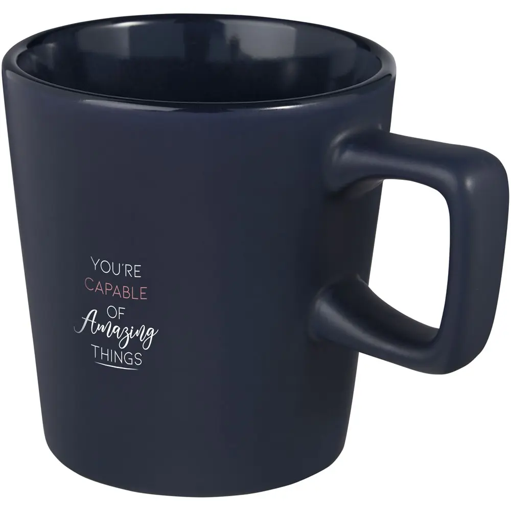 Découvrez notre tasse en céramique au design contemporain et finition mate, idéale pour personnaliser avec votre logo. Avec une capacité de 280 ml, elle offre un espace généreux pour un café ou un thé quotidien, tout en servant d'outil marketing efficace pour vos événements ou campagnes publicitaires.
