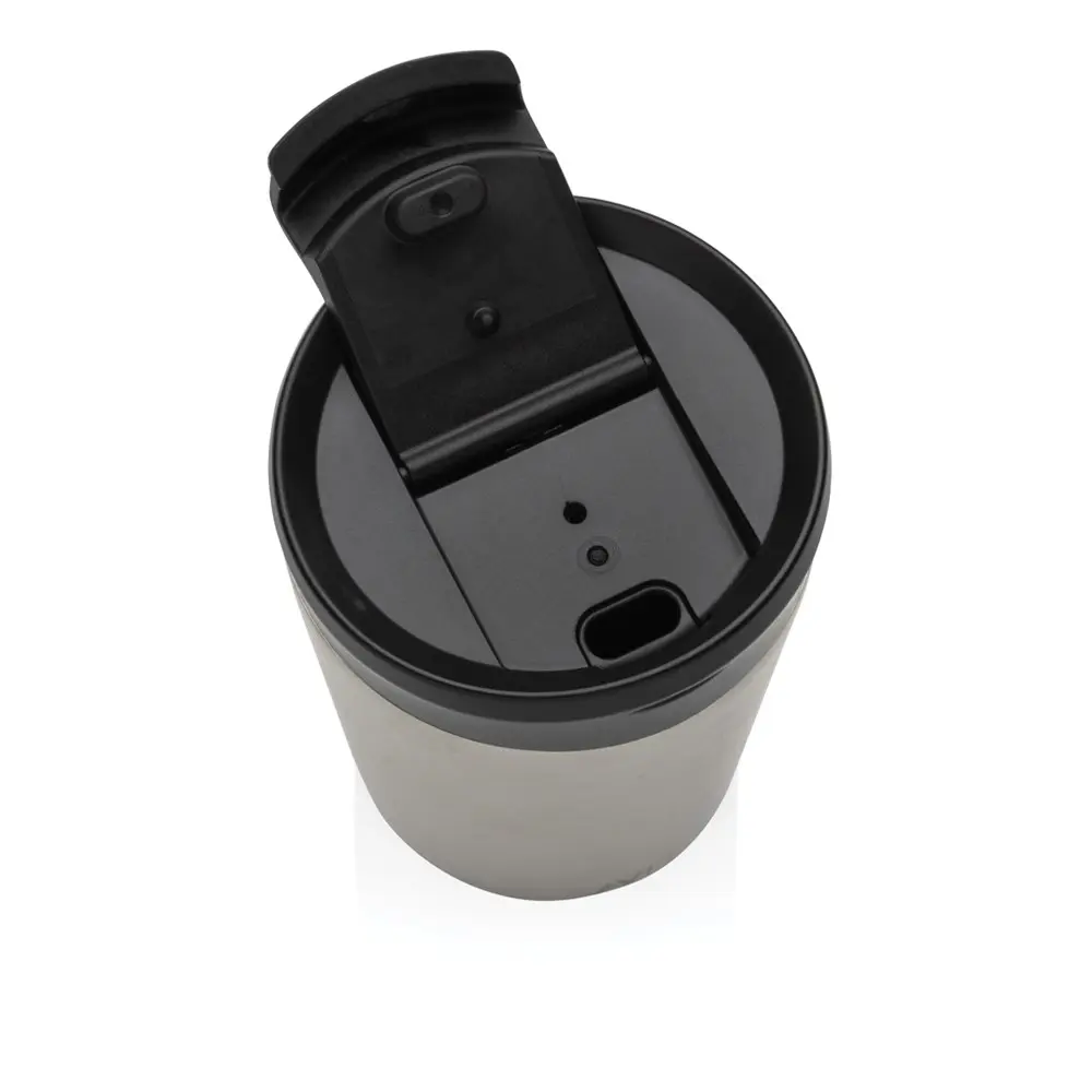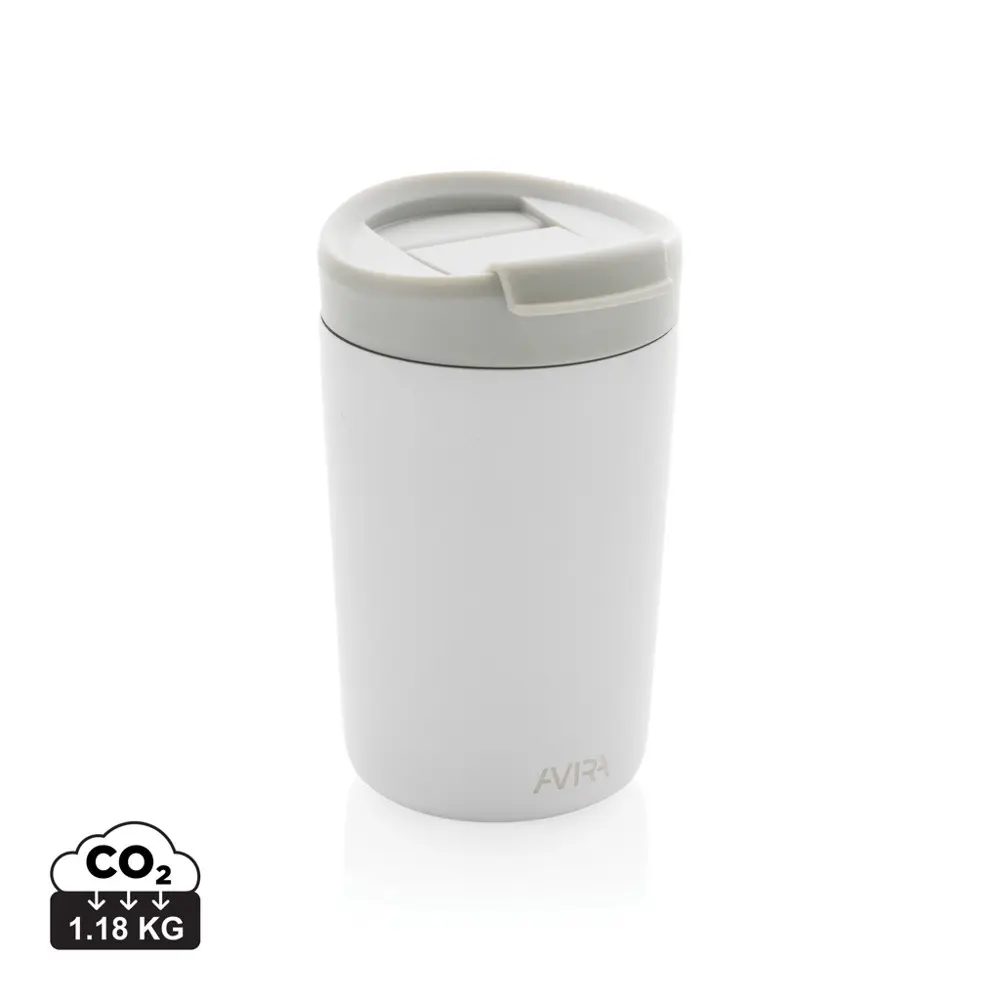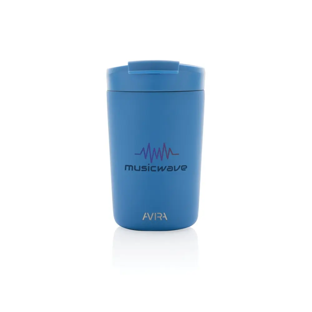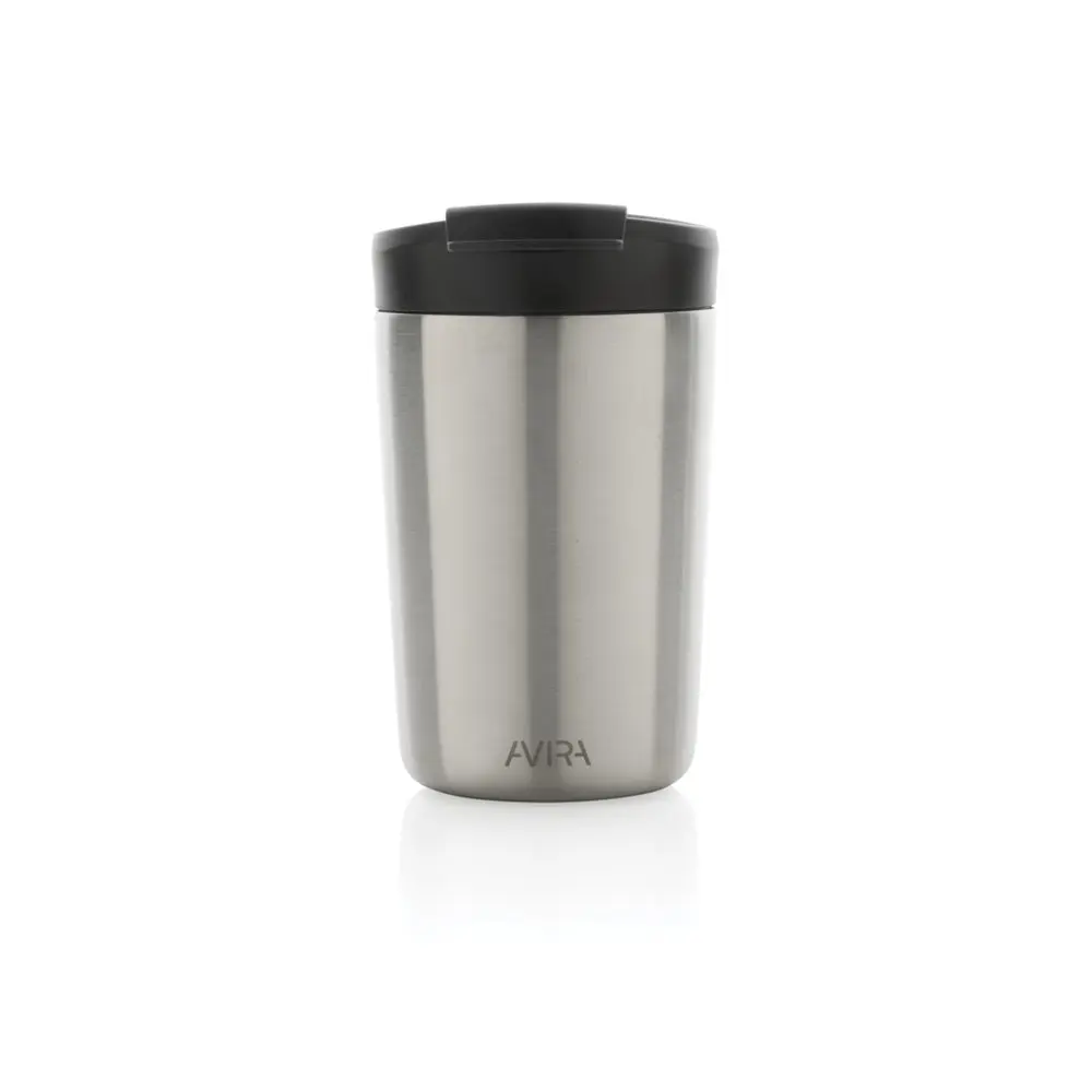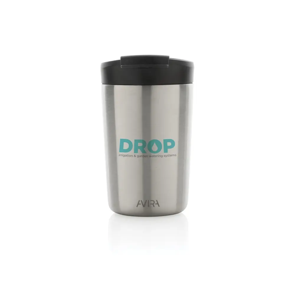 Découvrez la mug Alya 300 ml, un cadeau d'entreprise élégant et écologique idéal pour personnaliser avec votre logo. Fabriquée en acier inoxydable recyclé double paroi, elle maintient les boissons chaudes jusqu'à 6 heures et froides jusqu'à 8 heures, grâce à son isolation sous vide. La base antidérapante en silicone assure une stabilité parfaite lors des événements ou au bureau.