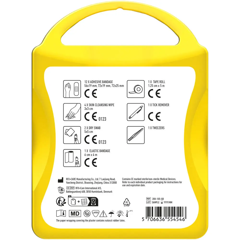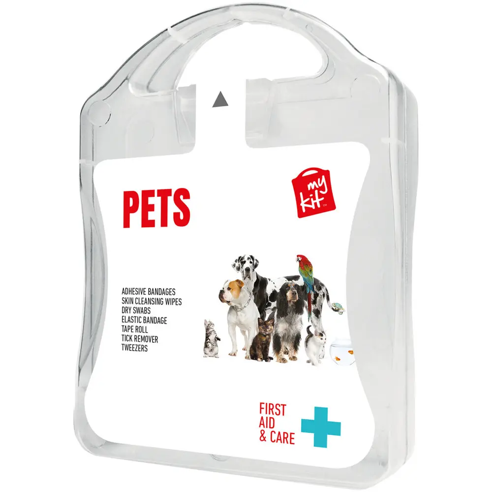Découvrez le kit de premiers secours MyKit Animaux Domestiques, idéal pour les propriétaires d'animaux de compagnie. Ce kit compact (10 x 13,4 x 3 cm) en plastique durable, fabriqué en Europe, contient 12 pansements, 4 cotons pour nettoyer la peau, 2 cotons secs, 1 retire-tiques, 1 bandage élastique, 1 pince à épiler et 1 bande adhésive. Tous les éléments respectent la législation européenne pour une qualité optimale.