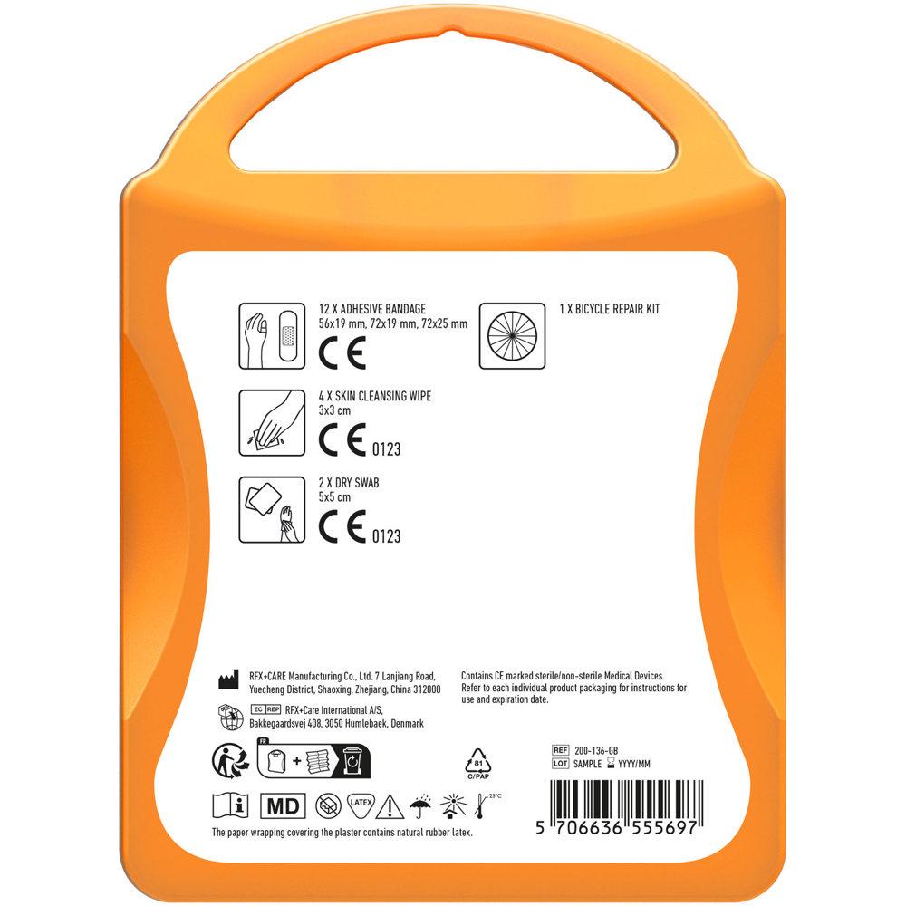 Découvrez MyKit Réparation Vélo, le kit indispensable pour les amateurs de vélo, combinant réparation rapide et premiers secours essentiels. Ce coffret compact contient 12 pansements adhésifs, 4 cotons imprégnés pour nettoyer la peau, 2 cotons secs et 1 kit de réparation complet, tous conformes à la législation européenne.