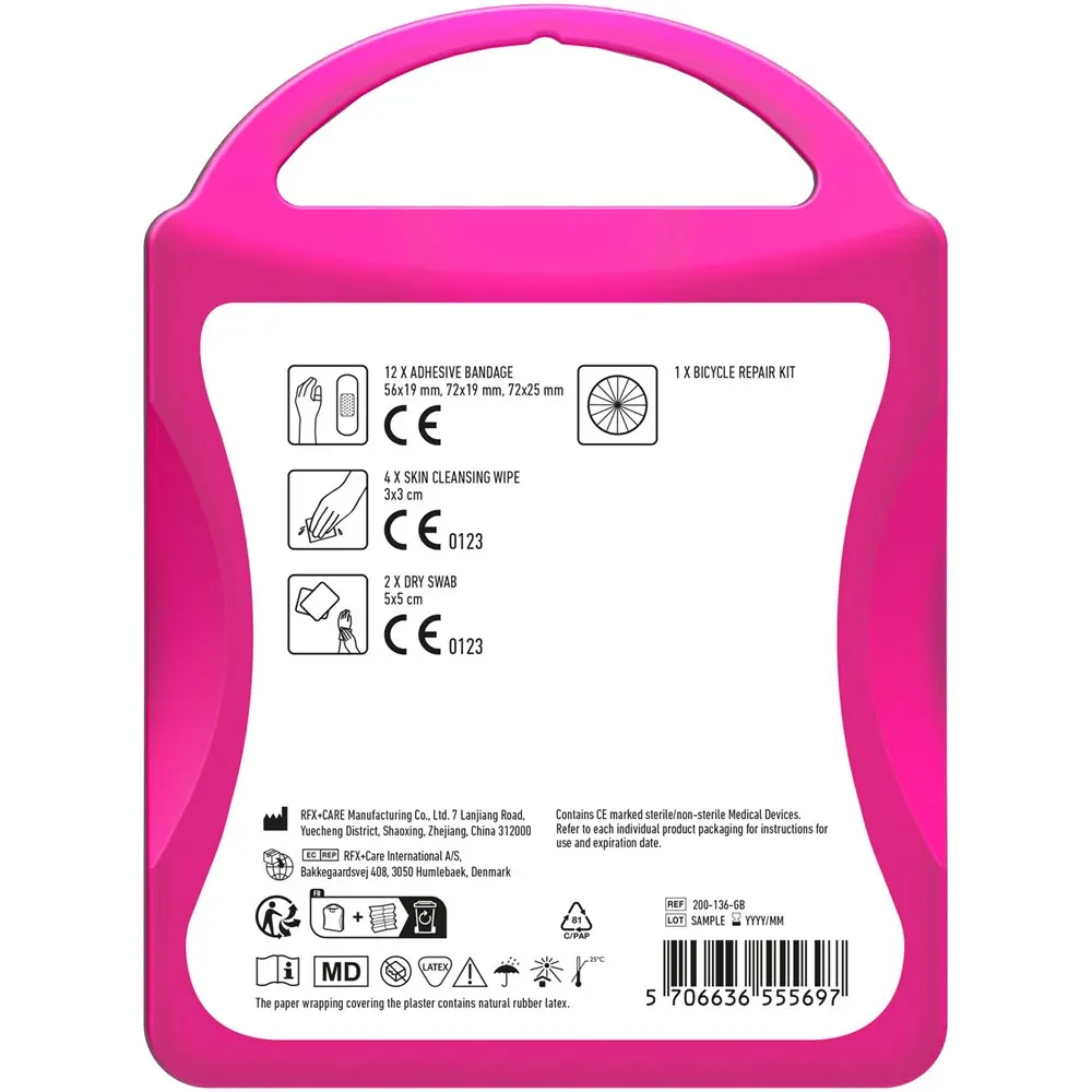 Découvrez le MyKit Réparation Vélo, un kit compact et pratique idéal pour les événements cyclistes ou les campagnes promotionnelles. Ce kit essentiel inclut 12 pansements, 4 cotons pour nettoyer la peau, 2 cotons secs et 1 kit de réparation vélo, tous conformes à la législation européenne. Fabriqué en Europe avec du plastique durable, il mesure 10 x 13,4 x 3 cm pour une facilité de transport.