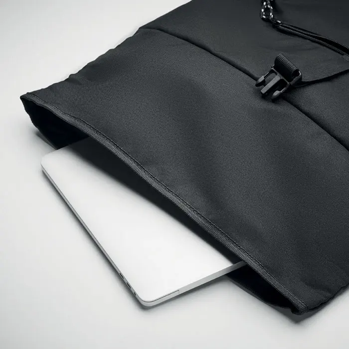 Découvrez notre sac à dos enroulable fabriqué en polyester 600D RPET, un matériau recyclé respectueux de l'environnement. Avec un dos et un fond rembourrés pour un confort optimal, ce sac se roule facilement pour un rangement compact et pratique. Il dispose d'une poche frontale zippée pour un accès rapide à vos essentiels, et une doublure en RPET 210D pour une finition soignée.