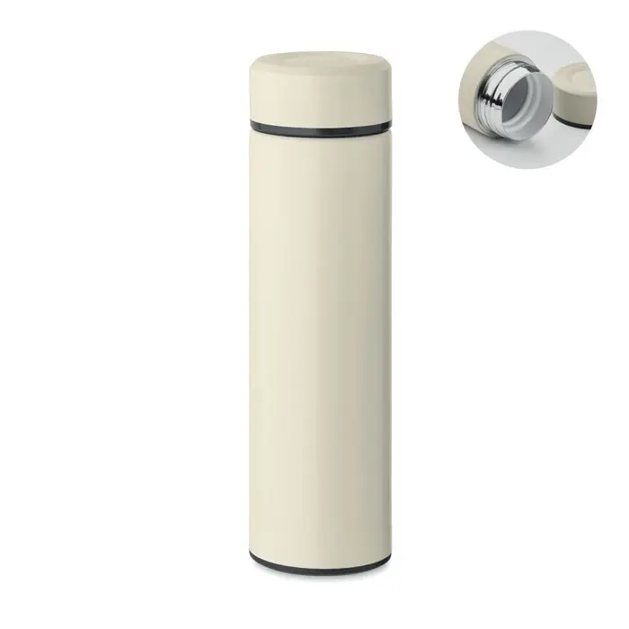 Découvrez notre bouteille à double paroi de 420 ml, idéale pour les entreprises soucieuses de l'environnement et de la qualité. Fabriquée en acier inoxydable recyclé à 90 %, avec une paroi intérieure en céramique, elle offre une isolation sous vide parfaite pour maintenir vos boissons au frais ou au chaud pendant des heures.