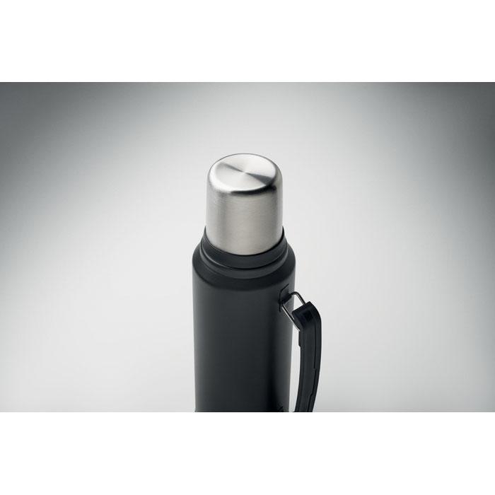 Dotée d'une poignée latérale ergonomique, d'un couvercle en PP et d'un gobelet intérieur en acier inoxydable recyclé, elle est totalement anti-fuite et d'une capacité généreuse de 1L. Idéale pour les professionnels du marketing et organisateurs d'événements, cette bouteille renforce votre image de marque grâce à une personnalisation facile avec logo.