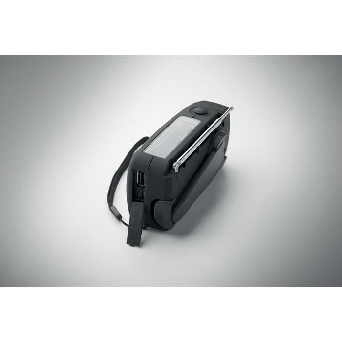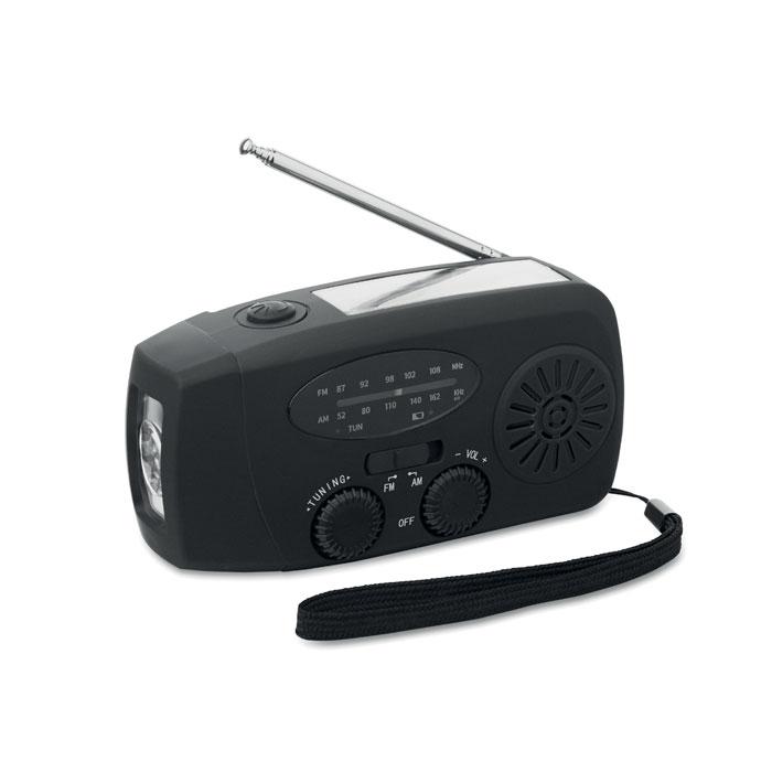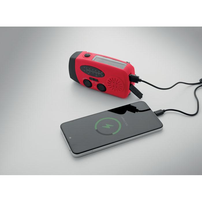 Découvrez cette radio portable AM/FM multifonctionnelle, idéale comme relation-cadeau personnalisé pour vos événements ou campagnes promotionnelles. Fabriquée en ABS robuste, elle intègre une torche LED à 2 intensités, une powerbank 1200 mAh pour recharger vos appareils en urgence, et se recharge via énergie solaire ou manivelle pour une autonomie illimitée.