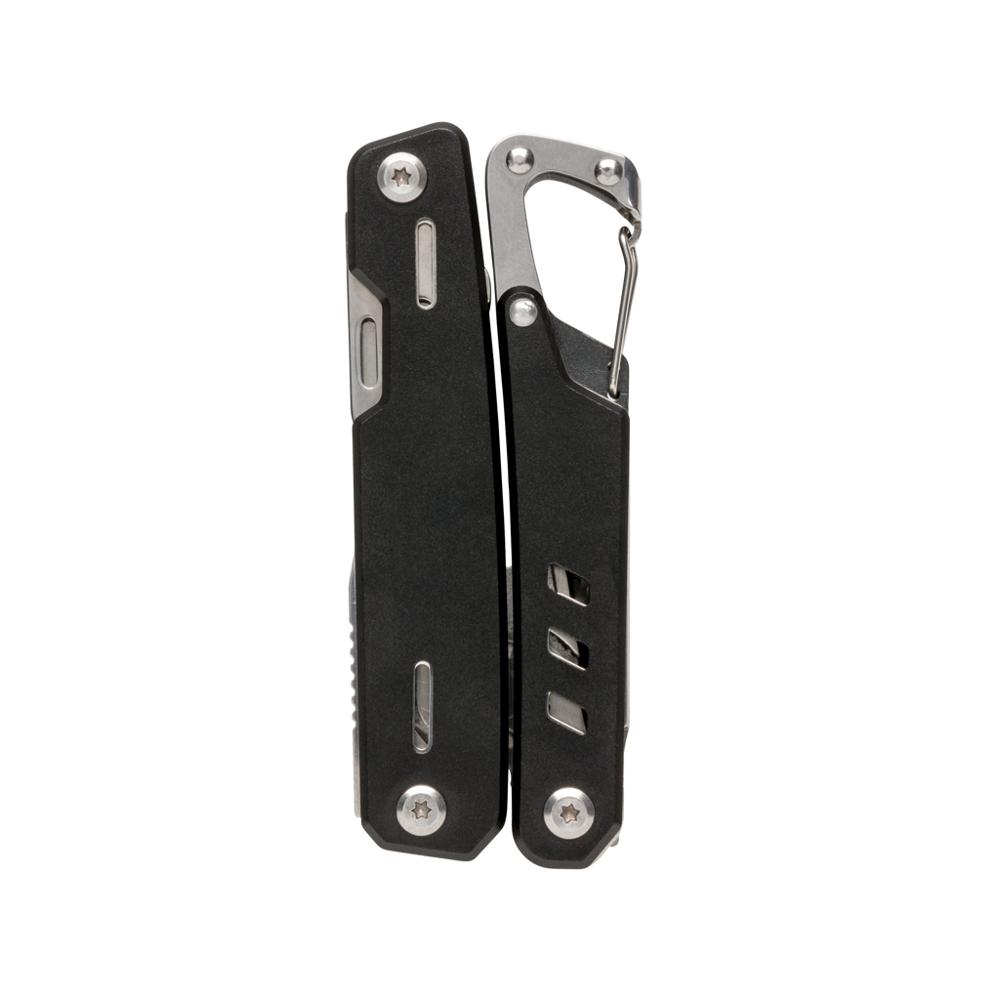 Découvrez l'outil multifonctions avec mousqueton Solid, un compagnon idéal pour vos campagnes promotionnelles et événements d'entreprise. Fabriqué en aluminium robuste, il intègre 11 outils en acier inoxydable de haute qualité pour une utilisation polyvalente au quotidien.