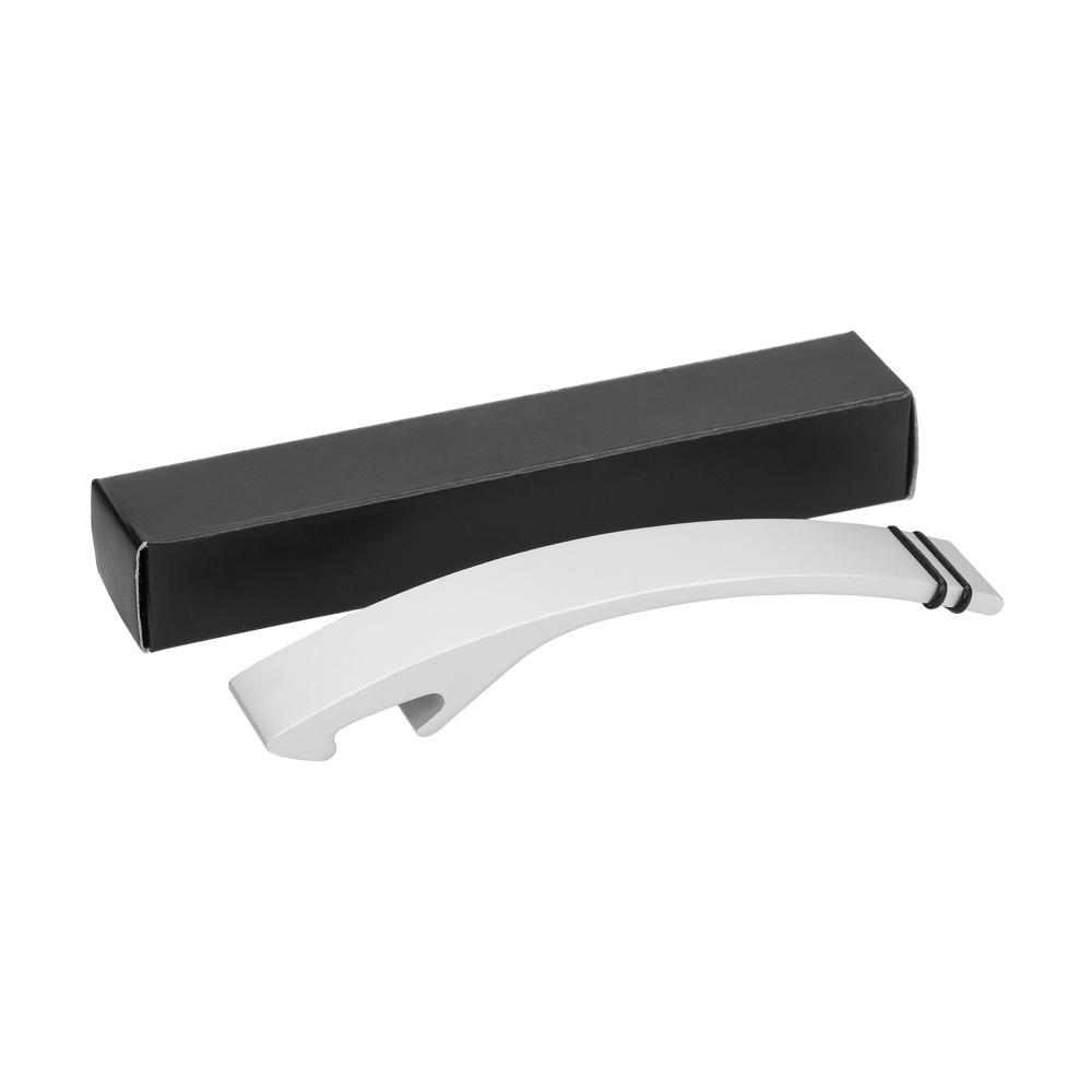 Découvrez ce décapsuleur raffiné en aluminium brossé, équipé d'anneaux en caoutchouc à l'extrémité de la poignée pour une prise antidérapante et confortable. Idéal pour les entreprises et organisateurs d'événements, il se personnalise facilement avec votre logo, transformant un simple outil en puissant vecteur de communication.