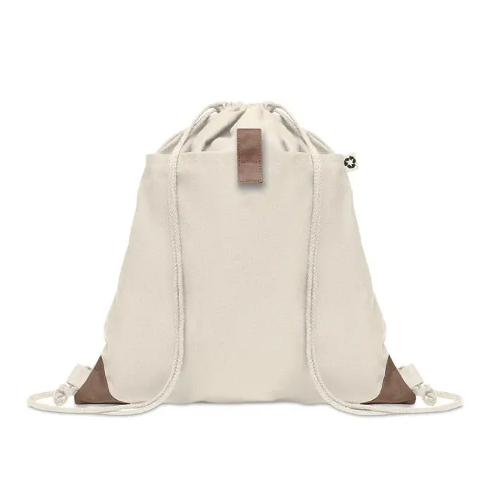 Découvrez notre sac à cordon fabriqué à partir de coton recyclé, idéal pour les entreprises soucieuses de l'environnement. Composé de 50 % de coton et 50 % de coton recyclé, avec des cordons naturels, ce modèle pèse 220 gr/m² pour une robustesse optimale.