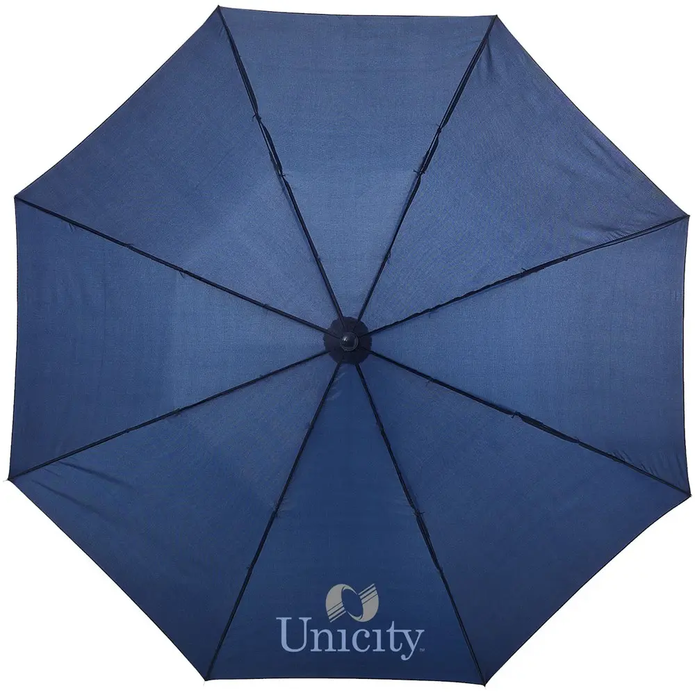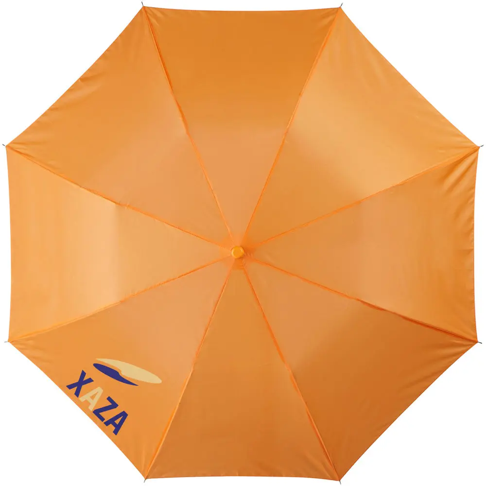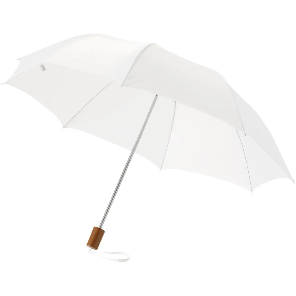Découvrez le parapluie pliable 20" Oho, l'accessoire promotionnel idéal pour vos événements et campagnes marketing. Compact et pratique, il se range facilement dans une pochette protectrice incluse, mesurant seulement 37,5 cm une fois plié, pour s'insérer parfaitement dans un sac à main. Son armature en métal robuste et sa poignée légère s'adaptent à toutes les mains, offrant une protection fiable contre la pluie avec un diamètre ouvert de 90 cm.
