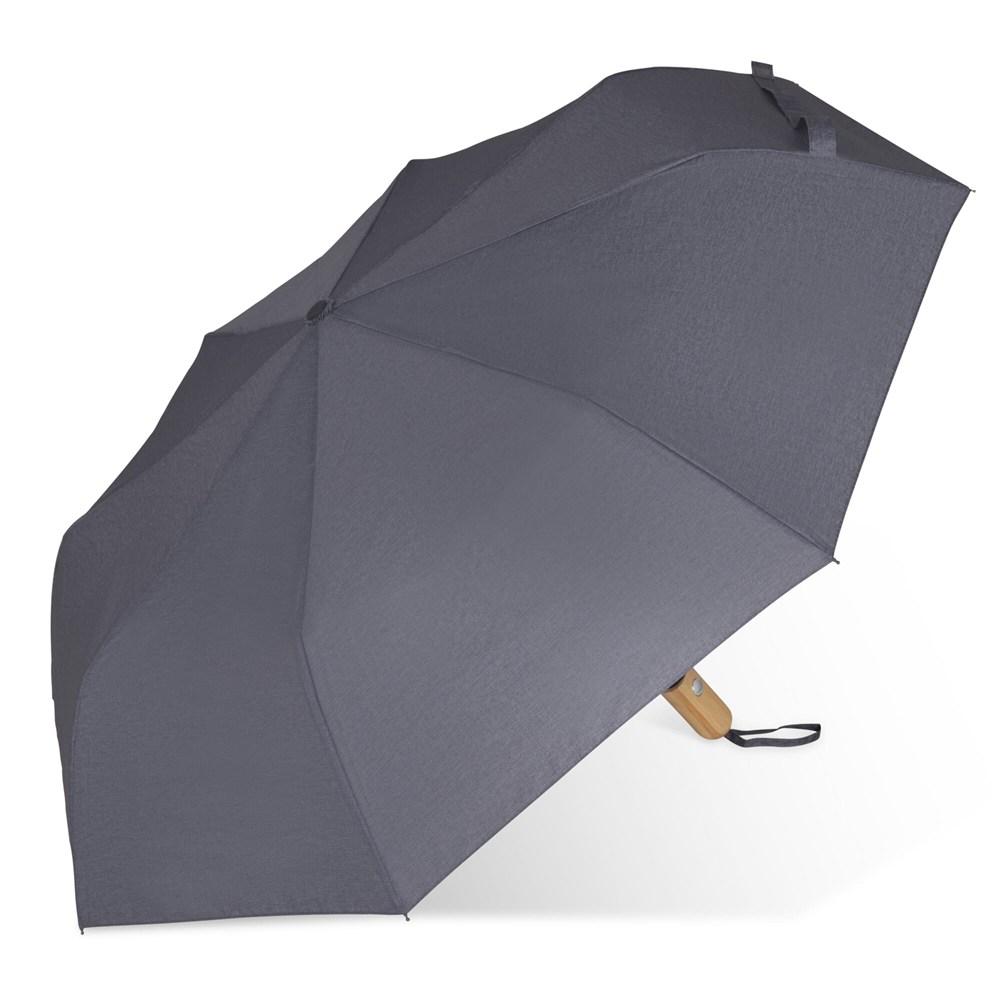 Découvrez ce parapluie pliable haut de gamme, idéal pour vos campagnes marketing et événements. Fabriqué en R-PET recyclé, il allie durabilité environnementale et élégance intemporelle grâce à son manche en bois véritable et son design emblématique.