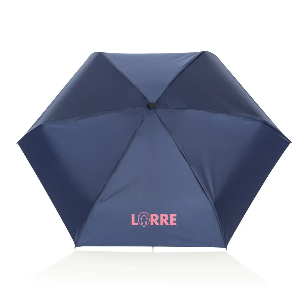 Offrez un cadeau pratique et responsable à vos clients lors d'événements ou campagnes marketing. Ce parapluie pliant en rPET Aware™ se replie en cinq sections pour un rangement ultra-compact, idéal pour les sacs ou poches quotidiennes. Il déploie une protection complète avec un diamètre de 100 cm, parfait pour les journées pluvieuses imprévues.