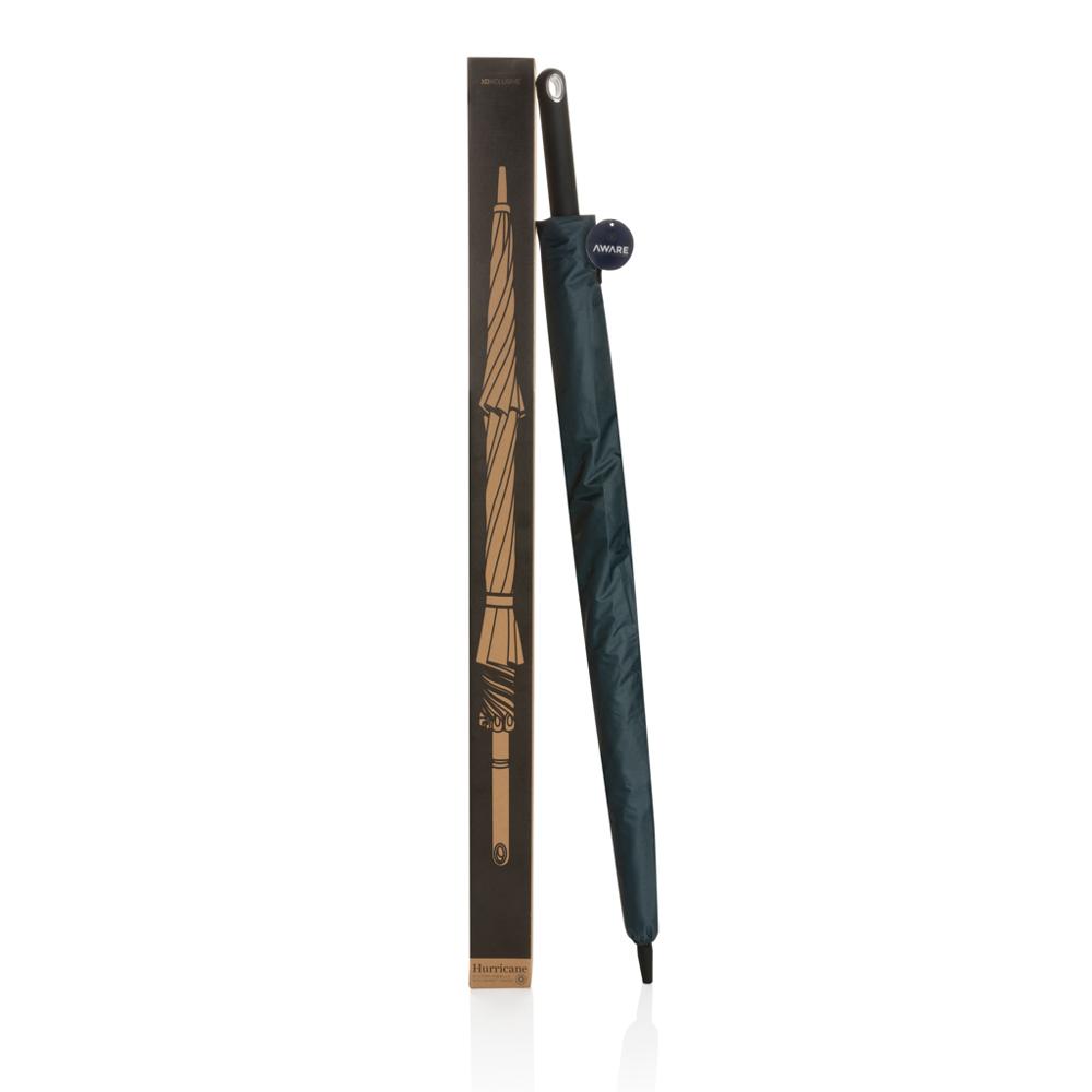 Personnalisable avec votre logo, ce parapluie promotionnel renforce votre visibilité de marque lors d'événements pluvieux ou comme cadeau client durable. Certifié AWARE™ avec traçabilité des matériaux recyclés, il soutient Water.org (2 % des ventes reversés) et incarne un engagement écologique attractif pour votre image d'entreprise.