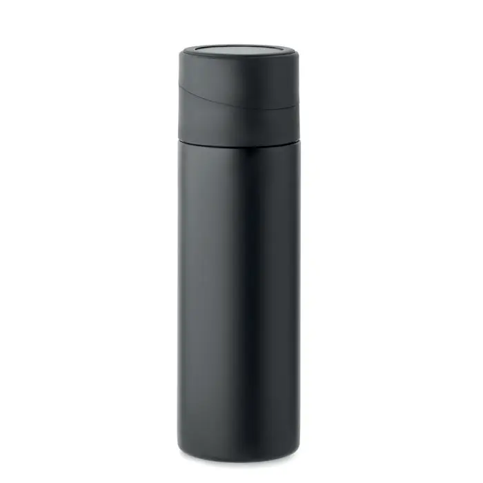 Découvrez notre bouteille double paroi de 420 ml, idéale pour les cadeaux d'entreprise personnalisés. Fabriquée en acier inoxydable recyclé (90 % recyclé et 10 % neuf), elle offre une isolation sous vide pour maintenir vos boissons au frais ou au chaud pendant des heures. Équipée d'un couvercle en silicone antidérapant compatible avec les téléphones portables, elle est totalement étanche pour éviter les fuites.