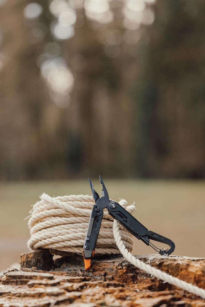 - Polyvalence maximale : 16 fonctions intégrées pour tous les besoins – pince à bec effilé, pince standard, pince coupante, mousqueton, décapsuleur, lime, couteau, scie, outil pour tente, règle, lame dentelée, cutter, pied-de-biche, tournevis cruciforme, ouvre-boîte et silex pour allumer un feu en urgence.