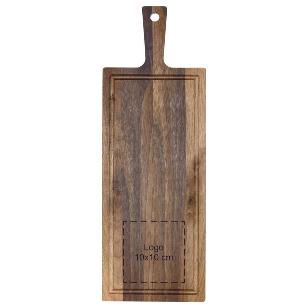 Découvrez notre planche de service en noyer avec poignée et rigole à jus, l'instrument idéal pour impressionner vos clients lors d'événements ou de réceptions professionnelles. Personnalisable avec votre logo, elle devient un relationnel cadeau premium qui renforce votre image de marque en étant distribuée en grandes quantités.