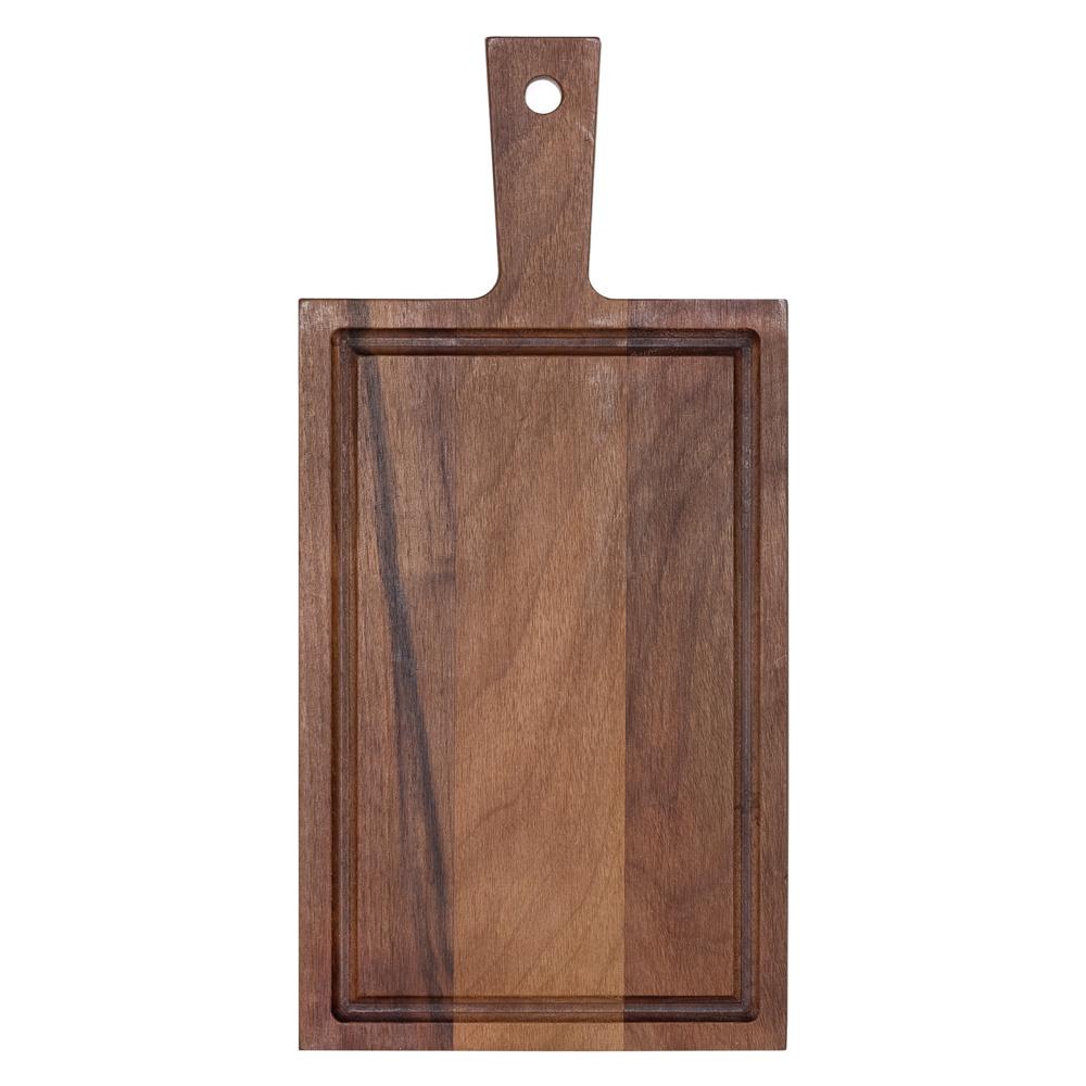 Planche de service en noyer avec poignée et rigole à jus