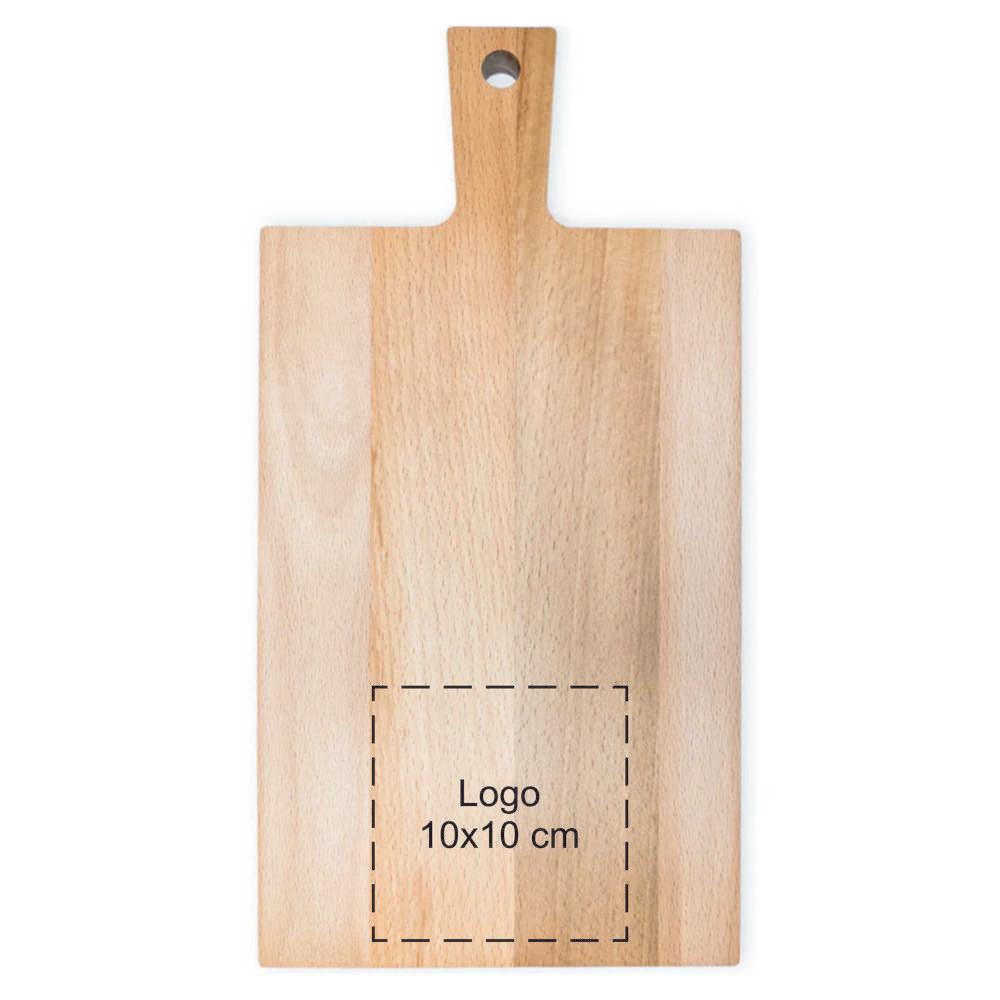 Découvrez notre planche de service en bois de hêtre avec poignée, un ustensile de cuisine élégant et robuste de 37x19 cm, idéal pour personnaliser avec votre logo et offrir en grand volume lors d'événements ou comme cadeau promotionnel.