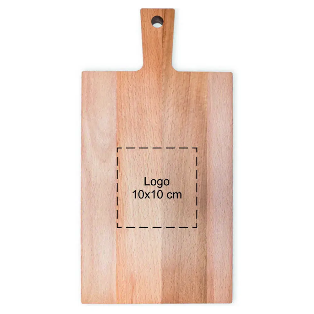 Fabriquée en bois de hêtre robuste, elle allie résistance et élégance naturelle, s'adaptant à tous les styles de décoration. La poignée intégrée facilite son transport et son utilisation, tandis que sa conception sans rigole assure une présentation propre et soignée. Choisissez-la pour des cadeaux relationnels qui combinent utilité quotidienne et visibilité de votre entreprise, en optant pour des options écologiques et durables.