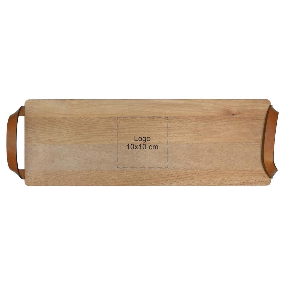 Découvrez notre planche avec poignées en cuir hêtre, un relation cadeau personnalisable idéal pour les entreprises, marketing et organisateurs d'événements. Fabriquée en bois de hêtre robuste et durable, avec des dimensions généreuses de 69 x 19 cm, elle offre un espace parfait pour présenter fromages, charcuteries ou en-cas lors de vos événements ou comme cadeau promotionnel.