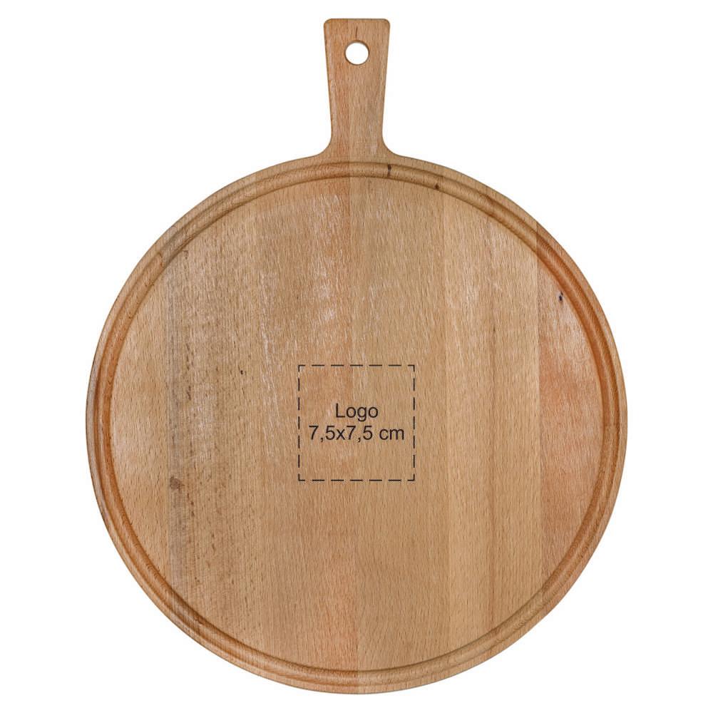 Découvrez notre planche de service ronde en bois de hêtre avec poignée, l'instrument promotionnel idéal pour vos événements d'entreprise, barbecues et actions marketing. Fabriquée en hêtre de haute qualité, elle allie robustesse et élégance, parfaite pour une utilisation intensive et une personnalisation avec votre logo.