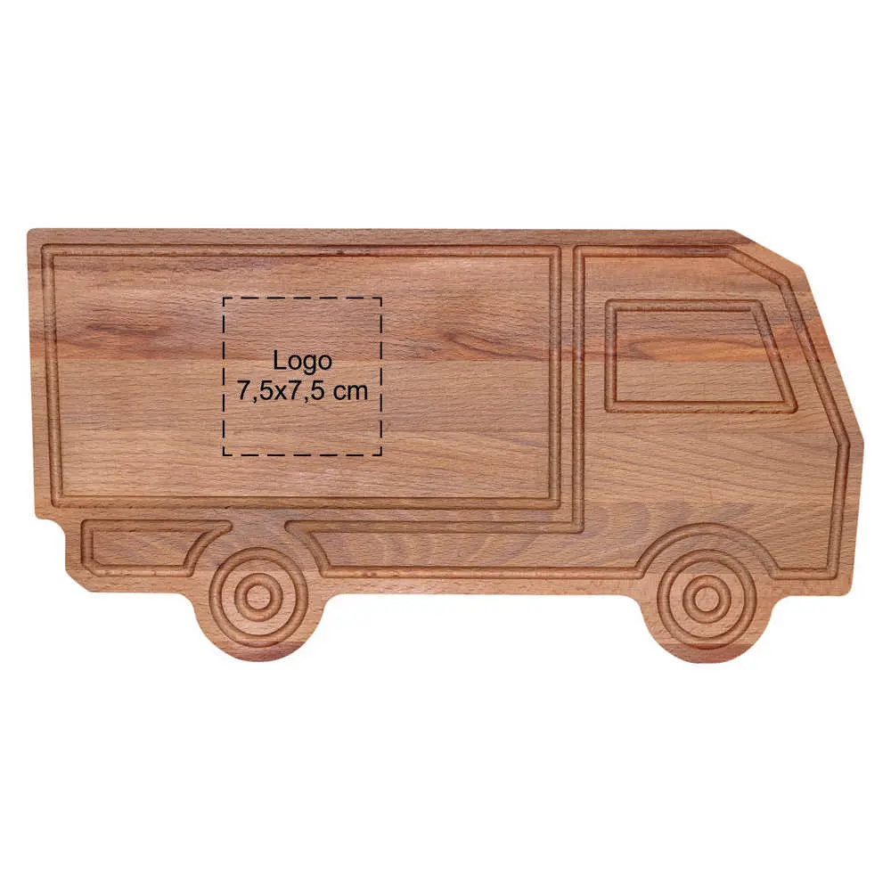 Découvrez notre planche en bois de hêtre en forme de camion, un cadeau promotionnel original et personnalisable pour vos événements d'entreprise. Avec ses dimensions imposantes de 40 x 20 cm, elle capte l'attention et offre un espace généreux pour une impression de logo ou de message personnalisé, renforçant votre marque de manière ludique.