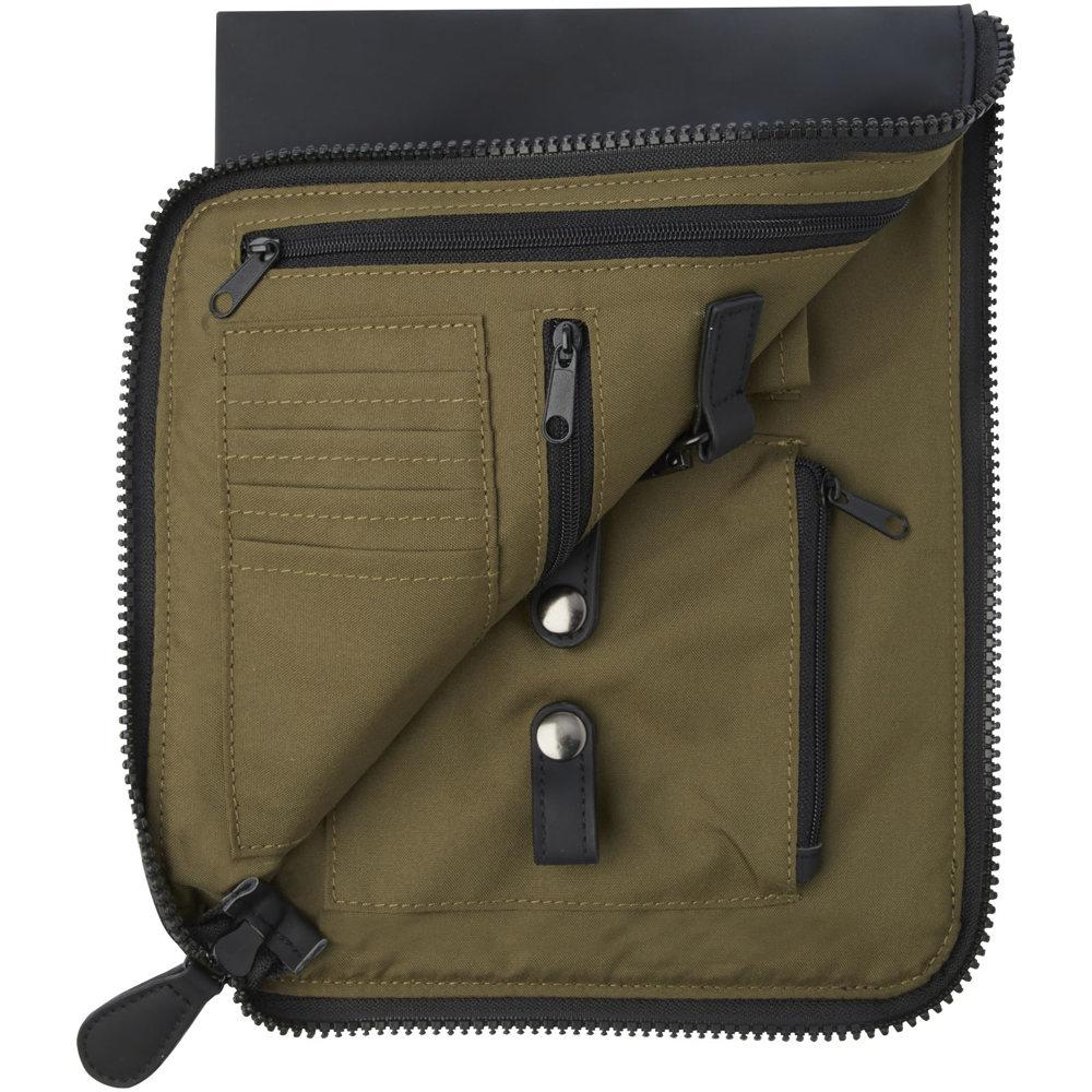 Découvrez la pochette organiseur Turner, idéale pour les entreprises et organisateurs d'événements cherchant des cadeaux promotionnels personnalisables et éco-responsables. Fabriquée à partir de 51 % de plastique PU recyclé GRS pour l'extérieur et 100 % de RPET recyclé GRS pour la doublure, elle allie durabilité et style classique.