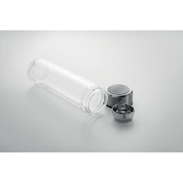 Découvrez la POLE GLASS - Bouteille verre double paroi, une solution premium en verre borosilicaté pour vos actions marketing et événements. Sa double paroi isolante maintient boissons chaudes ou froides plus longtemps, tandis que le thermomètre LED intégré au couvercle permet un contrôle précis de la température. L'infuseur à thé amovible offre une polyvalence idéale pour le thé ou les infusions, et le système anti-fuite garantit une utilisation sans souci.
