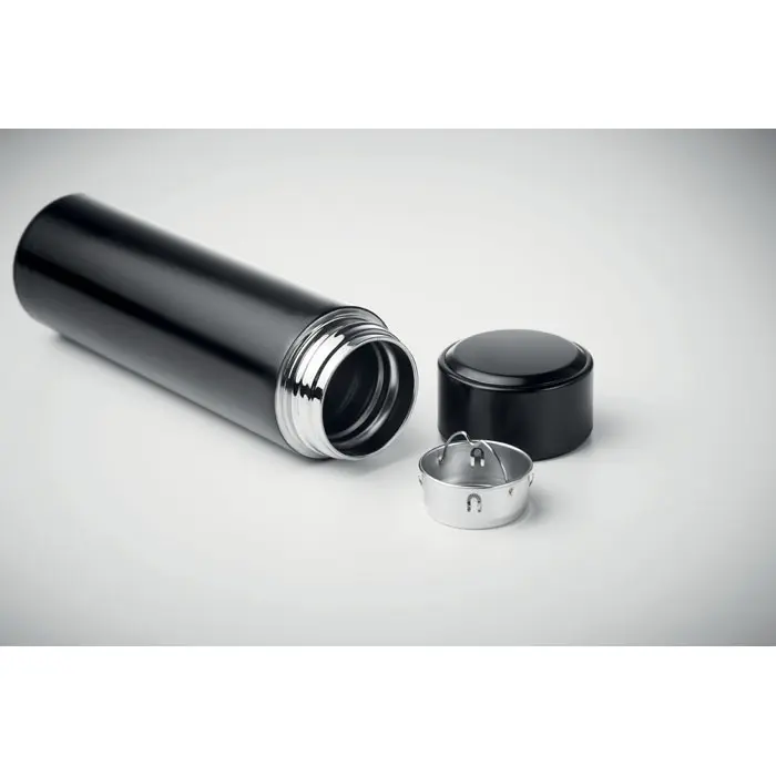 Découvrez la bouteille isotherme POLE avec thermomètre, idéale pour vos campagnes marketing et événements d'entreprise. Fabriquée en acier inoxydable à double paroi, elle maintient vos boissons au frais ou au chaud pendant des heures grâce à son isolation sous vide. Le thermomètre LED tactile intégré au couvercle permet une vérification précise de la température en un toucher, tandis que l'infuseur à thé interne offre une polyvalence pour infusions personnalisées. Étanchéité anti-fuite assurée, capacité de 450 ml, et alimentée par une pile CR2032 incluse.