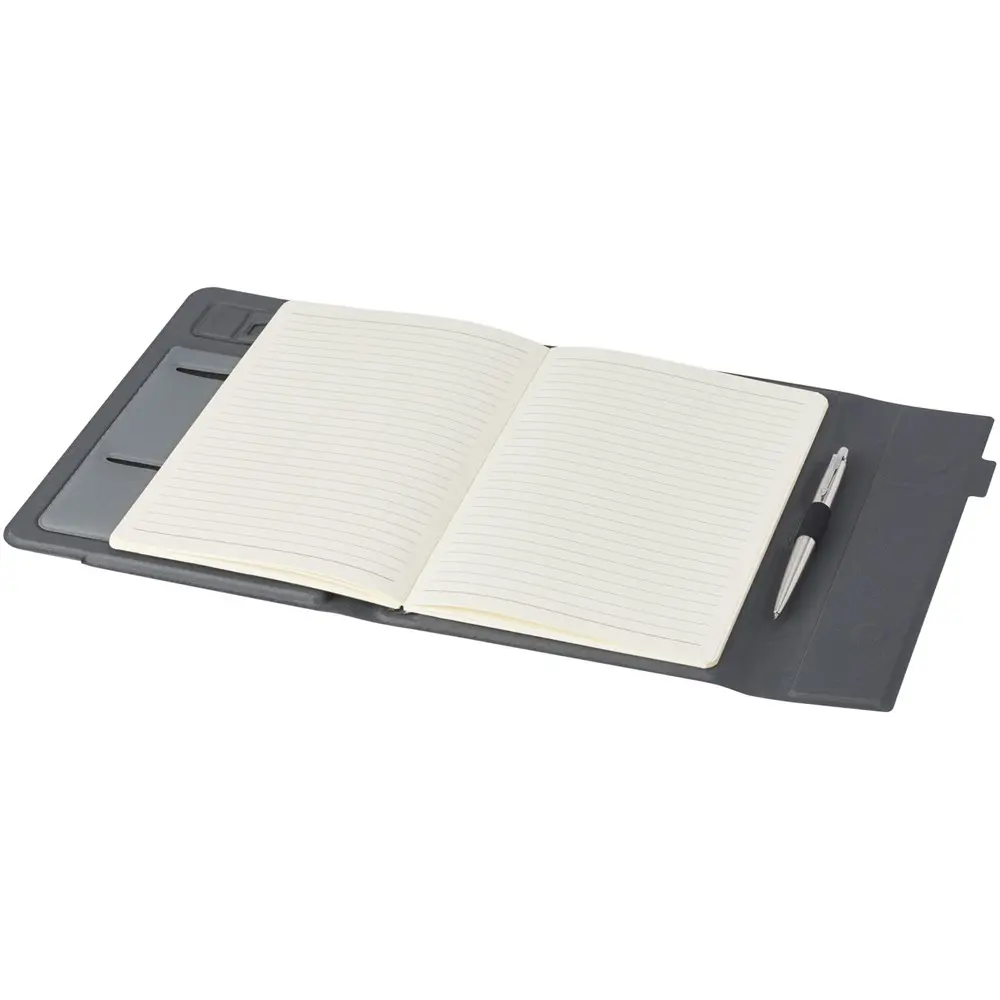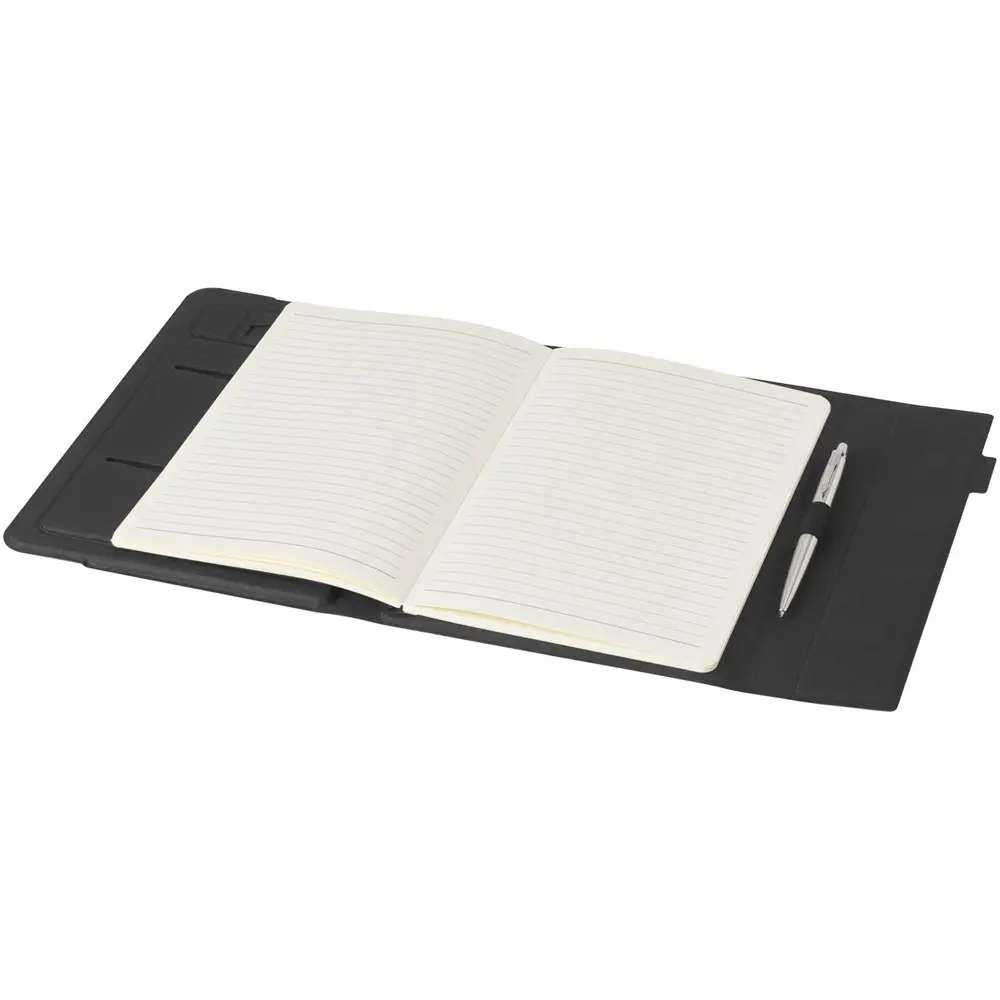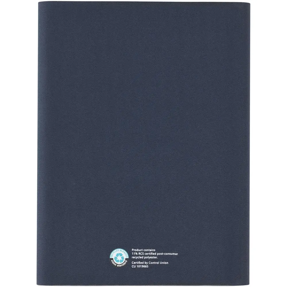 Le porte-documents Liberto, certifié RCS, est idéal pour les professionnels soucieux de durabilité et d'image de marque. Fabriqué partiellement en polyester recyclé post-consommation, il réduit l'usage de matières premières neuves et s'aligne sur les valeurs éco-responsables de votre entreprise. Doté d'une boucle pour stylo, d'une pochette accordéon pratique et de 64 feuilles lignées en papier recyclé de 80 g/m² certifié FSC, il offre une organisation optimale pour notes et documents lors d'événements ou de rencontres clients.