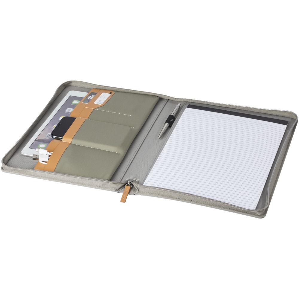 Équipé d'une fermeture à glissière sécurisée, d'une boucle pour stylo pratique, d'une pochette accordéon organisée et de 20 feuilles blanches lignées en papier recyclé 70 g/m² issu de sources durables, ce porte-documents A4 est idéal pour noter idées et contacts lors de salons ou rendez-vous professionnels.