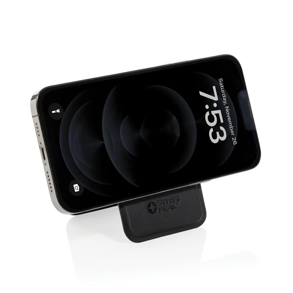 Ce portefeuille magnétique simplifie la vie de vos destinataires en intégrant un support téléphone robuste. Adieu aux recherches fastidieuses de cartes ou à la surcharge de poches : il accueille deux cartes essentielles tout en se transformant en stand mains-libres pour des appels ou vidéos fluides. Son design minimaliste renforce l'image de marque moderne et pratique, favorisant une visibilité accrue de votre logo lors des interactions clients. Offrez un outil quotidien qui incite à une utilisation régulière, amplifiant ainsi l'impact de votre stratégie marketing.