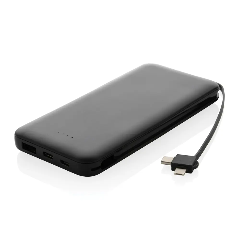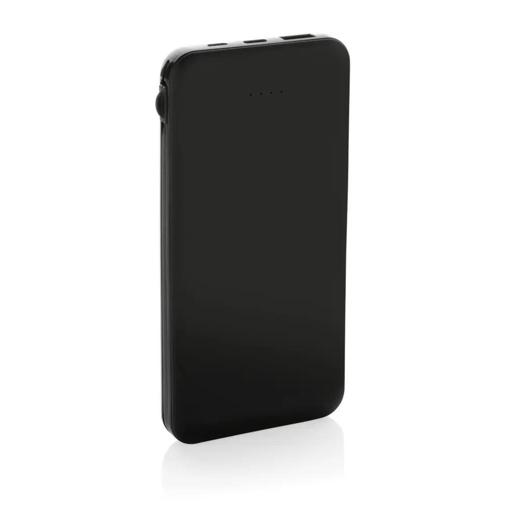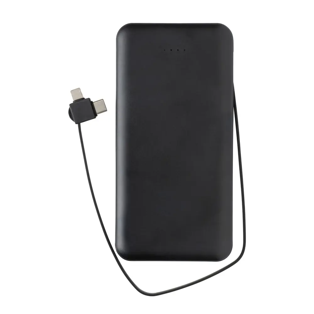 Offrez une solution pratique et durable à vos clients. Avec ses câbles de charge intégrés, elle simplifie la recharge en déplacement, évitant les oublis de câbles. Les indicateurs LED affichent le niveau de batterie restant, assurant une utilisation sans surprise. Idéale pour des campagnes éco-responsables, elle renforce l'image verte de votre entreprise tout en offrant une utilité quotidienne, boostant ainsi la satisfaction client et la fidélité à votre marque.