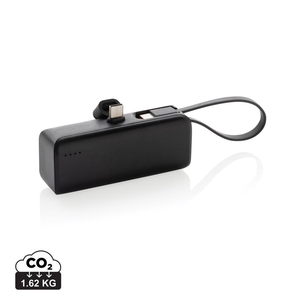 Powerbank recyclée 3000 mah avec câble usb-c intégré