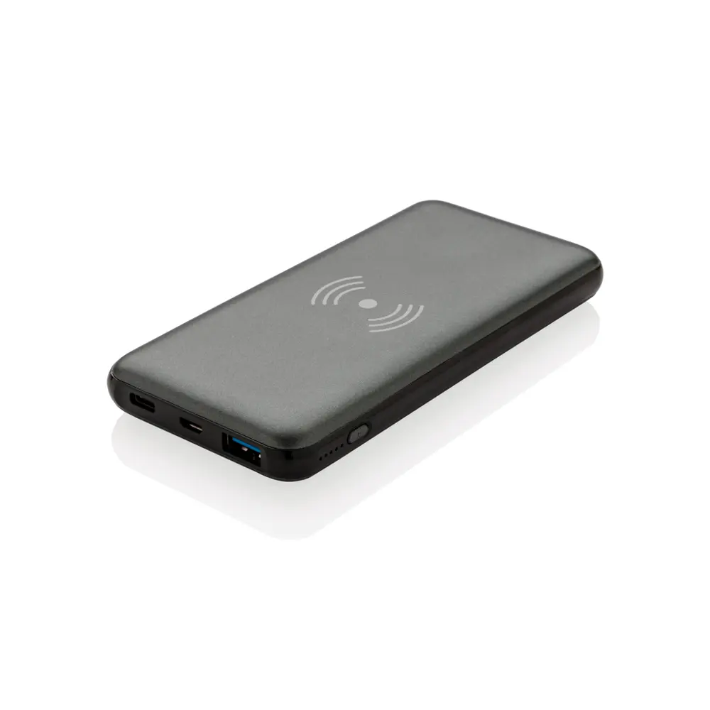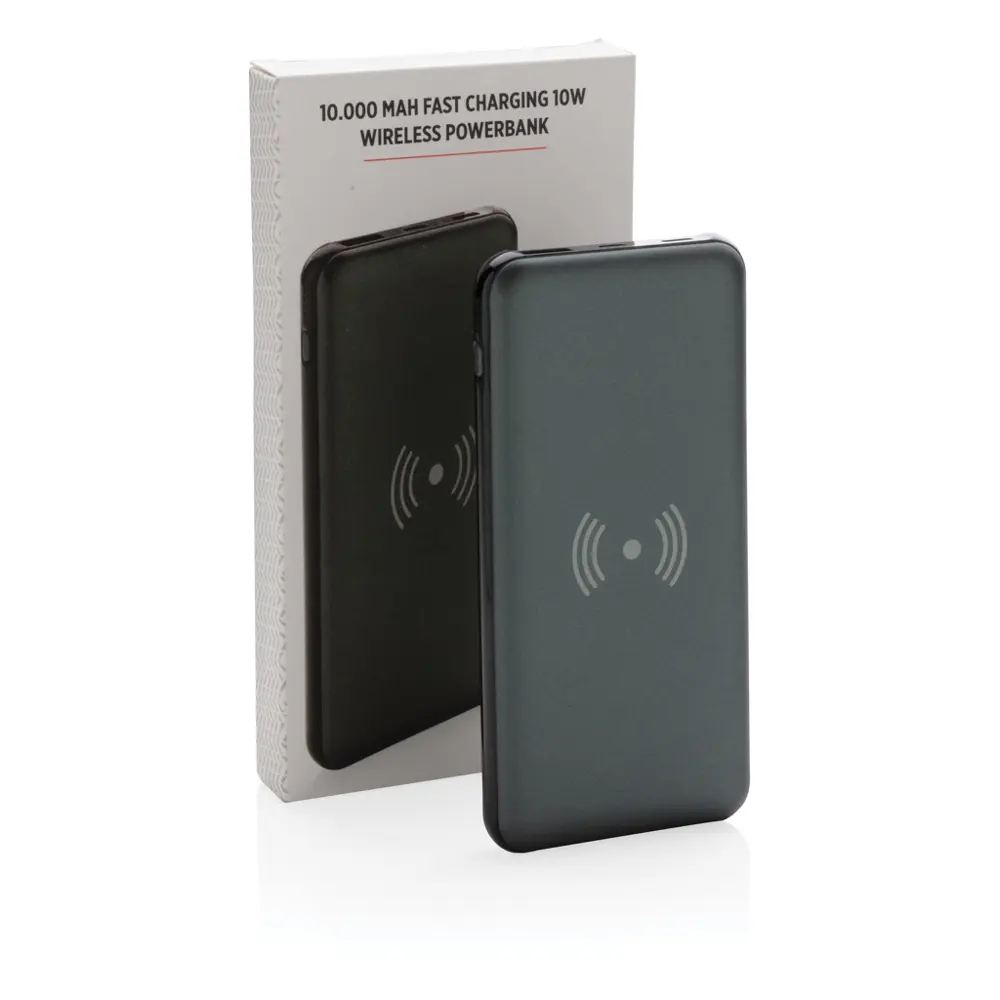Découvrez cette powerbank de 10 000 mAh, idéale pour personnaliser avec votre logo et offrir à vos clients lors d'événements ou comme cadeau promotionnel. Elle combine charge rapide filaire et sans fil, facilitant une recharge efficace pour smartphones, tablettes et plus, renforçant ainsi l'image innovante de votre marque.