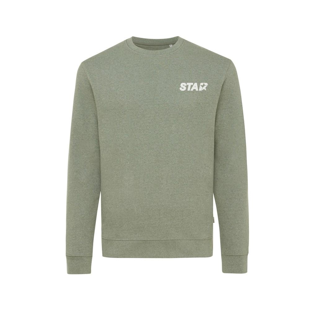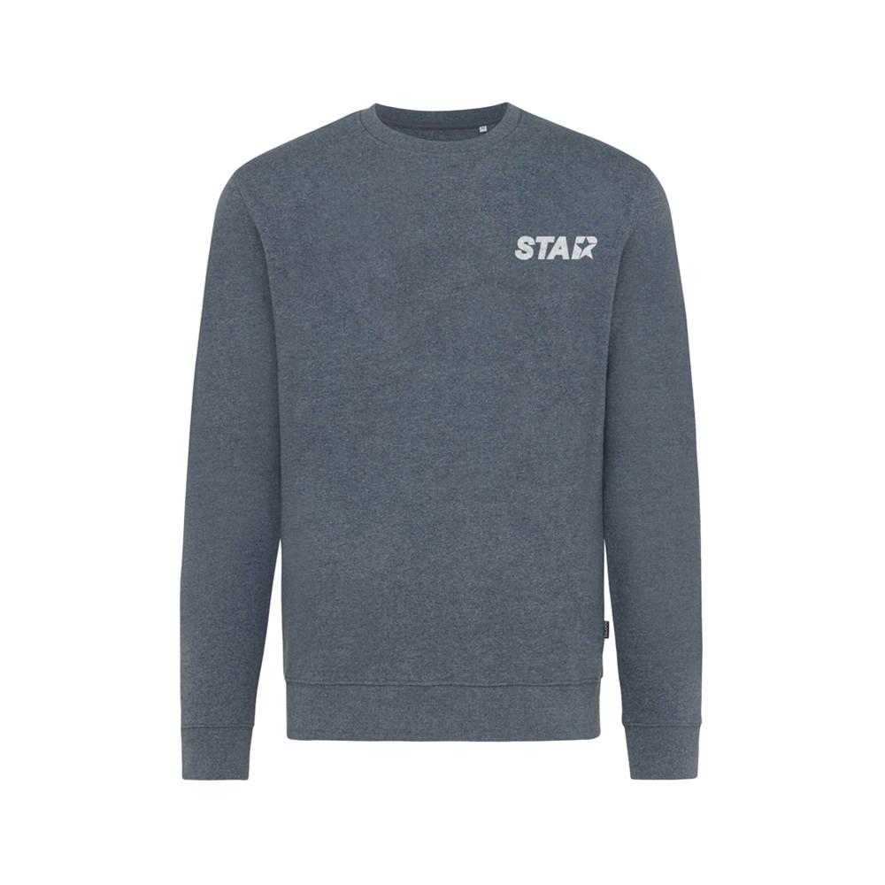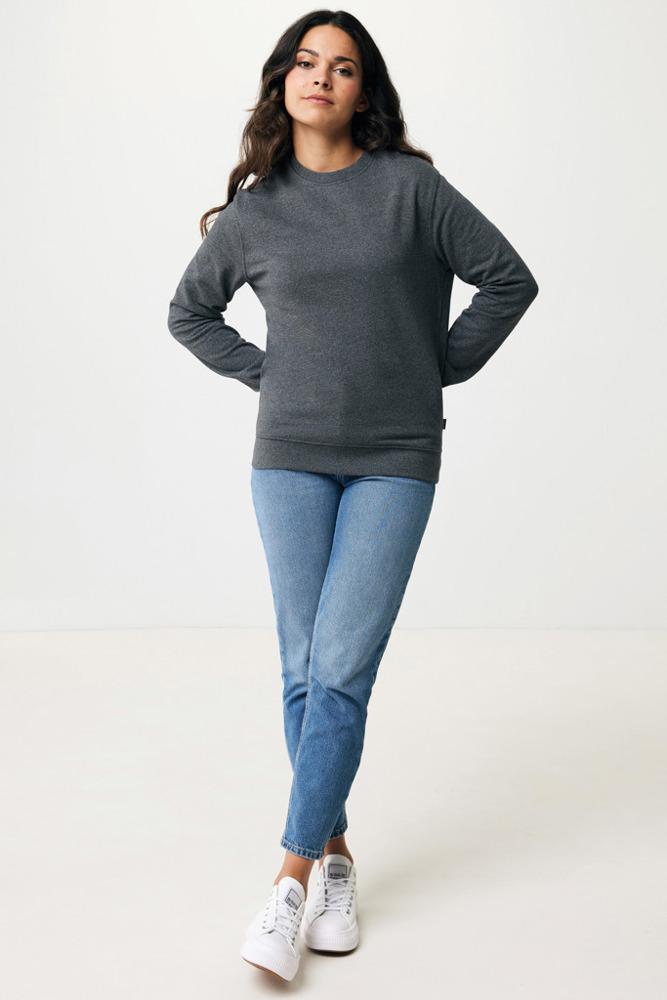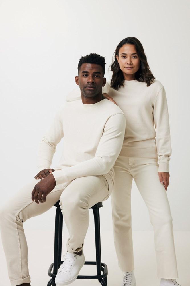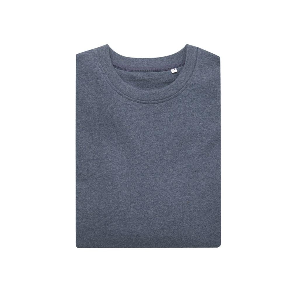 Fabriqué à 100% en coton – 50% recyclé et 50% biologique vierge –, ce pull de 340 g/m² offre un effet chiné unique sans teinture chimique. Totalement recyclable et sans plastiques, il incarne l'engagement durable de votre marque. Grâce au traceur AWARE™ et à la blockchain, chaque pièce est traçable avec une étiquette QR menant à son passeport numérique, prouvant son impact environnemental réduit.