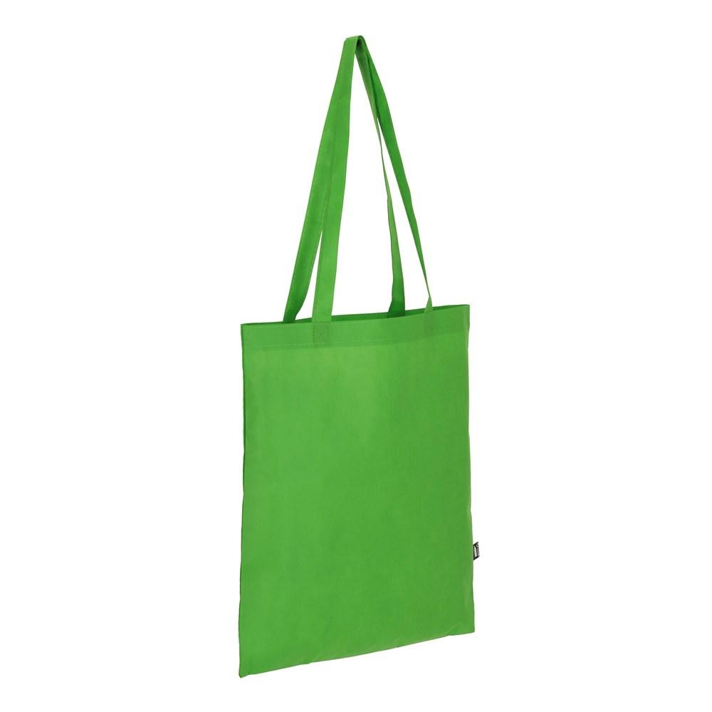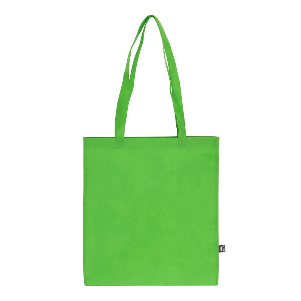 Sac de transport non tissé à longues poignées 38 x 42 cm, 75 g/m² : fabriqué à 100 % à partir de matériau recyclé, il offre une robustesse optimale grâce à ses poignées cousues renforcées, idéales pour un transport quotidien sans effort.