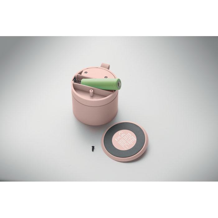 Profitez d'un son mono puissant de 3 W dans un design compact et moderne, parfait pour une mobilité optimale. La batterie rechargeable et remplaçable de 500 mAh assure une autonomie prolongée, idéale pour une utilisation nomade lors de salons, conférences ou cadeaux clients.