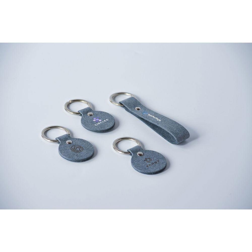 Découvrez ce porte-clés innovant en textile recyclé, composé à 70 % de déchets de denim, 25 % de liants et 5 % d'additifs d'origine végétale. Sa texture fine et moderne offre une flexibilité comparable au cuir véritable, pour un rendu premium et élégant.