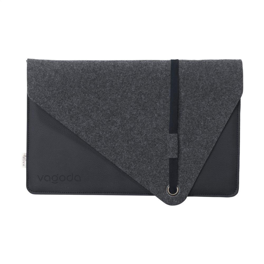 Découvrez notre housse élégante pour ordinateur portable 15/16 pouces, parfaite pour les entreprises et organisateurs d'événements cherchant des goodies personnalisables haut de gamme. Fabriquée à partir de cuir végétalien issu de pulpe de pomme recyclée et de feutre de laine recyclé (50% matériaux recyclés, 30% laine, 20% PE), elle allie style design et durabilité exemplaire, certifiée Global Recycled Standard.