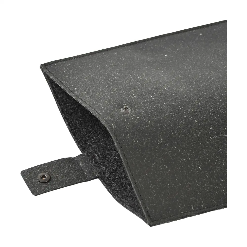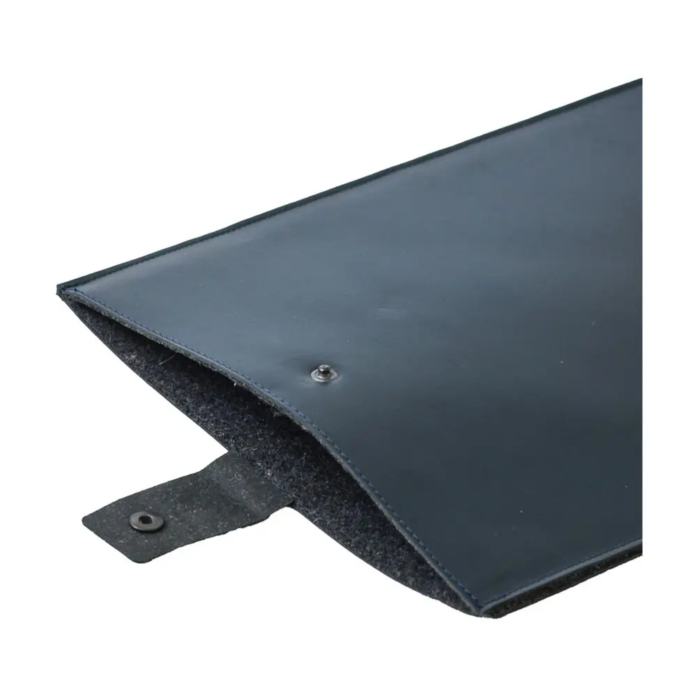Cette housse robuste protège efficacement votre ordinateur contre les chocs quotidiens, grâce à sa fermeture à bouton-pression sécurisée. Le cuir recyclé offre une résistance exceptionnelle et un aspect mat authentique qui respire la qualité. La doublure en feutre de laine recyclé (50% matériaux recyclés, 30% laine, 20% PE) assure un rembourrage doux, évitant les rayures sur l'appareil.