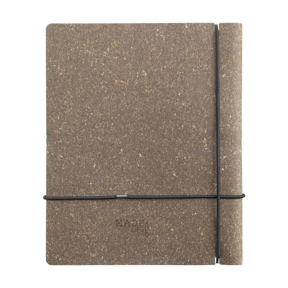 Découvrez ce carnet A5 éco-responsable, fabriqué à partir de déchets de cuir italien recyclés et de liants naturels. Signé de la marque MADE out of, il allie durabilité et élégance pour vos campagnes marketing et événements.