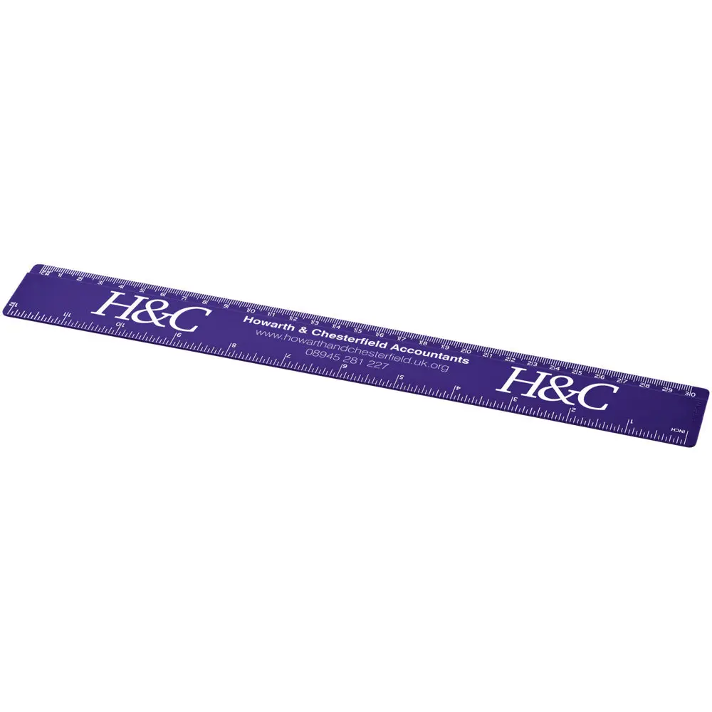 Découvrez la règle Renzo 30 cm, un outil promotionnel idéal pour vos campagnes marketing et événements d'entreprise. Fabriquée en plastique GPPS robuste, elle mesure 31,2 x 0,3 x 4,2 cm et offre des échelles précises en pouces et centimètres, imprimées directement lors de la personnalisation avec votre logo.