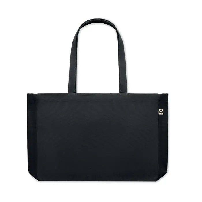 Découvrez notre sac shopping ou de plage fabriqué en toile recyclée de coton, avec une grammage robuste de 280 g/m². Équipé de longues anses pour un port confortable et d'un soufflet pour plus de volume, ce modèle est idéal pour transporter achats quotidiens ou accessoires de plage.